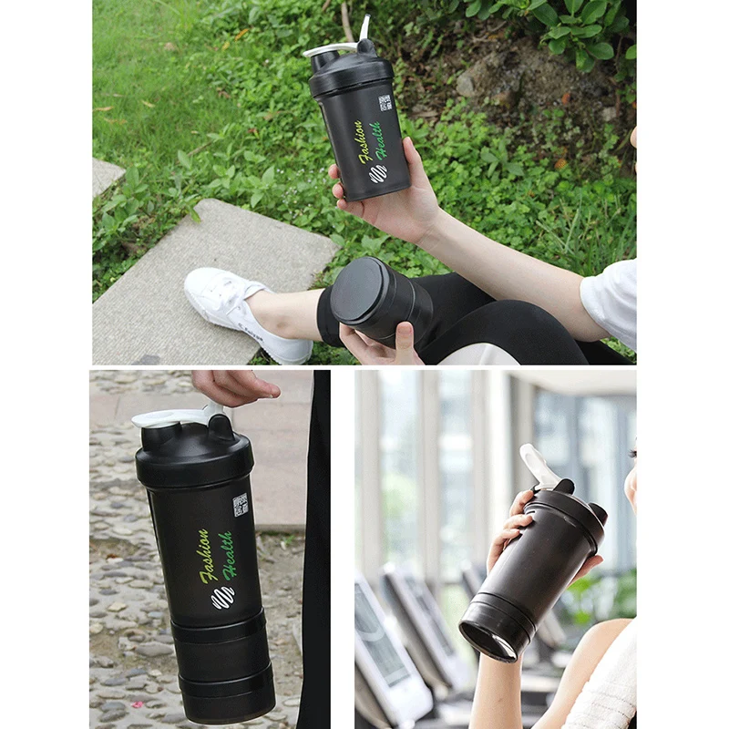 1. Это шейкер бутылки и 3 дополнительных отсека. Идеально подходит для хранения белкового порошка, добавки и т. д. все в бутылке для встряхивания идеально подходит для предварительной тренировки, после тренировки или для ежедневного использования.