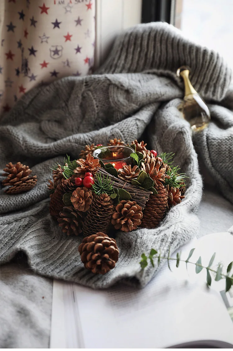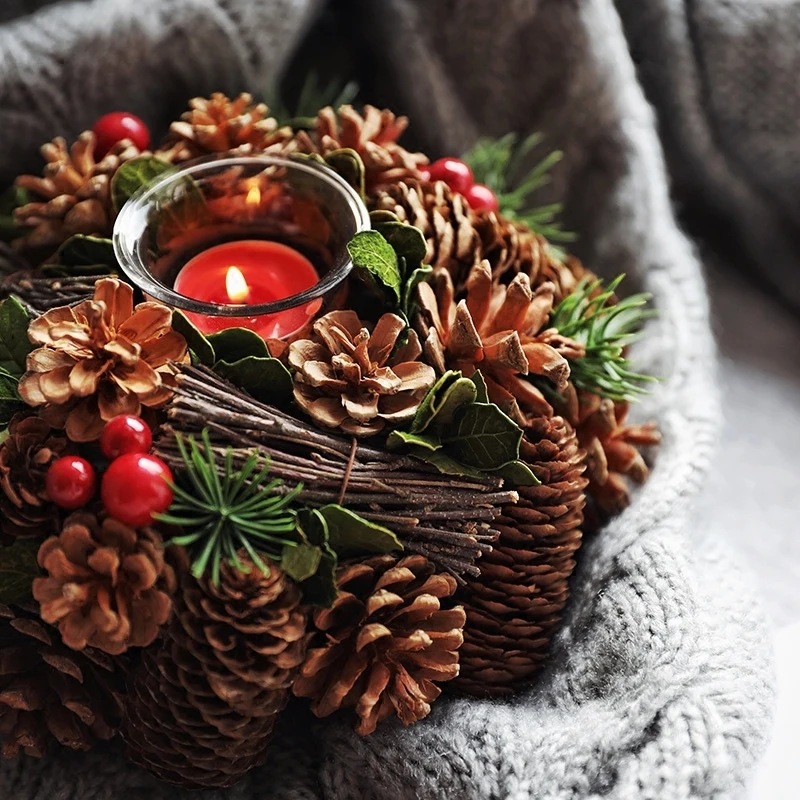 Материал: сосновый конус, ягоды, листья, дерево.