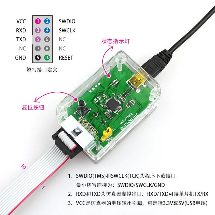Guyu настраиваемая версия эмулятора Jlink-Lite, поддерживает сердечник серии Cortex-M, двухпроводной интерфейс программирования SWD JTAG, поддерживает обновление прошивки, был обновлен до последней версии, совместимость с различными версиями JLINK driver.
