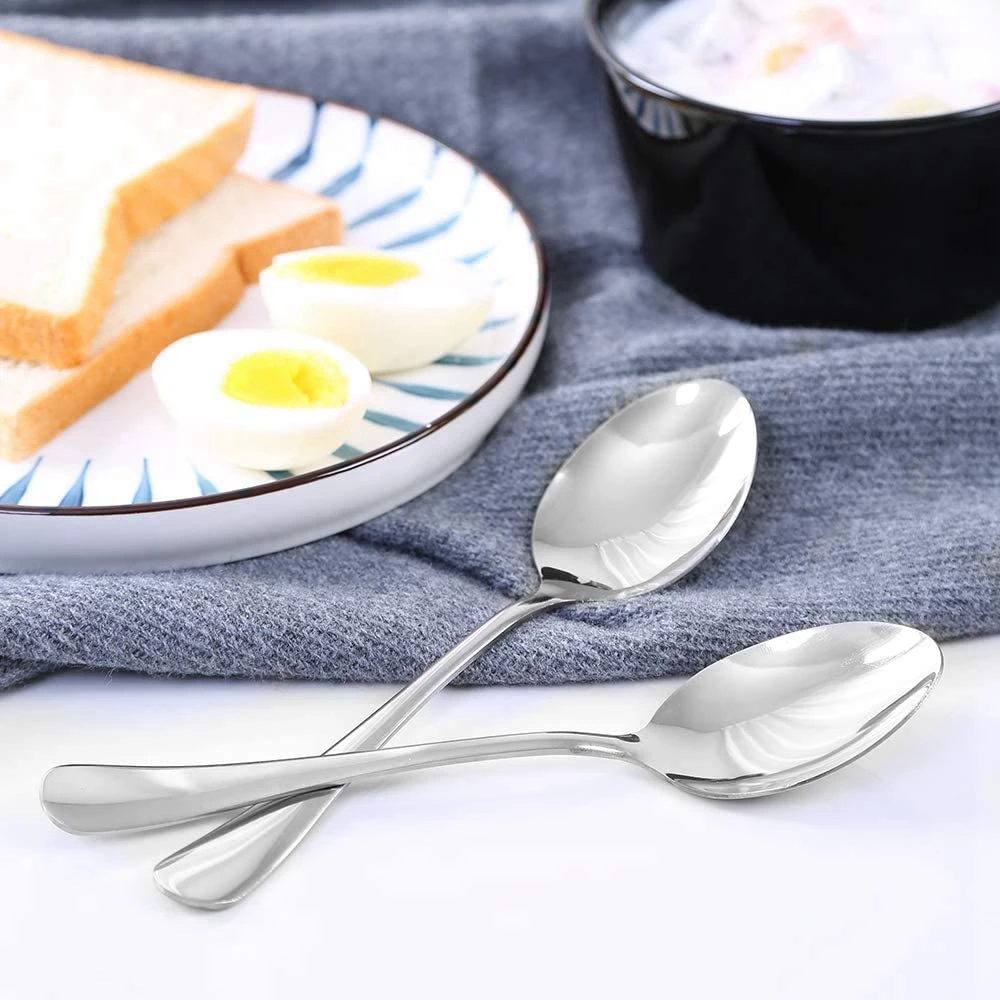 Тип: ложка для приправ Цвет: серебристый Размер: как на изображении Материал: нержавеющая сталь Размер: как на изображении Посылка включает: ложки 12 шт. Особенности: -- Набор из 12 обеденных ложек, сверхпрочные и долговечные, трудно сгибаются. Отлично подходит для повседневного использования, гостиницы, ресторана, развлекательной, праздничной трапезы и многого другого. -- Изготовлен из высококачественной нержавеющей стали, которая обеспечивает ваше здоровье, устойчив к ржавчине, прочен и долговечен на долгие годы. -- Зеркальная готовая поверхность, гладкие края без шероховатых пятен, правильная толщина и вес для удобного хранения. Простой внешний вид без излишнего раздражающего украшения, классический дизайн подходит для кухонной посуды любого стиля. -- Эти ложки из нержавеющей стали тщательно разработаны, чтобы без проблем добавить больше элегантности и класса Вашему столу. Подходит для мытья в посудомоечной машине.