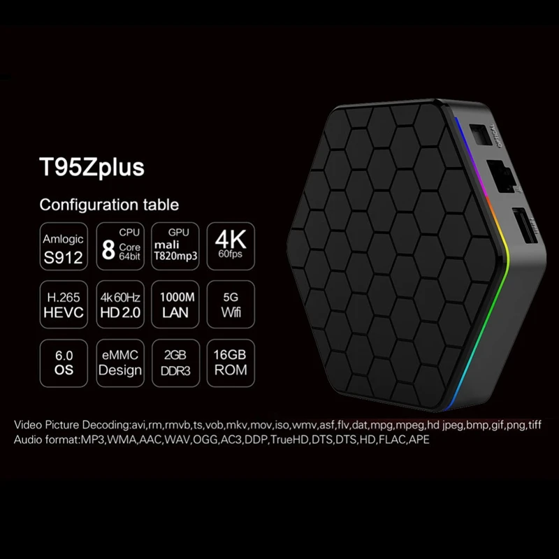 T95Z Plus TV BOX 2 ГБ + 16 Гб Восьмиядерный процессор Amlogic S912 Android 7,1 ТВ-бокс 2,4 ГГц/5 ГГц WiFi BT4.0 4K телеприставка (штепсельная Вилка европейского стандарта)