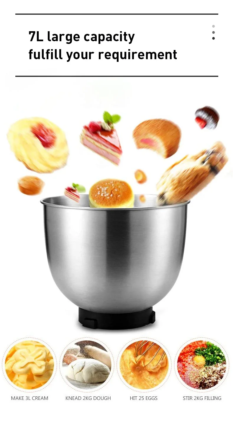 Чаша большой вместимости 7 л: спроектирована с большой чашей из нержавеющей стали с максимальной емкостью 7 л, она идеально отвечает всем вашим потребностям кухни. Вы можете в полной мере использовать его при встречах с семьей или друзьями.