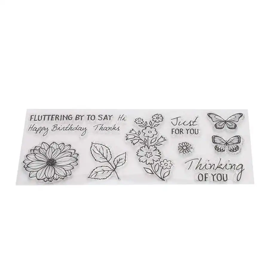 2Pcs Transparent Stamp Clear Rubber Stamp DIY Journal Flower Butterfly Pattern Craft T1659