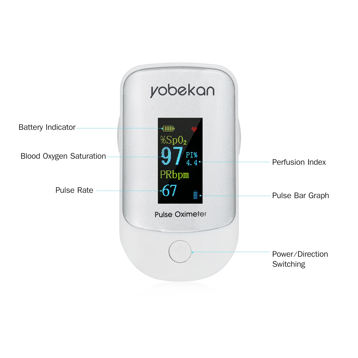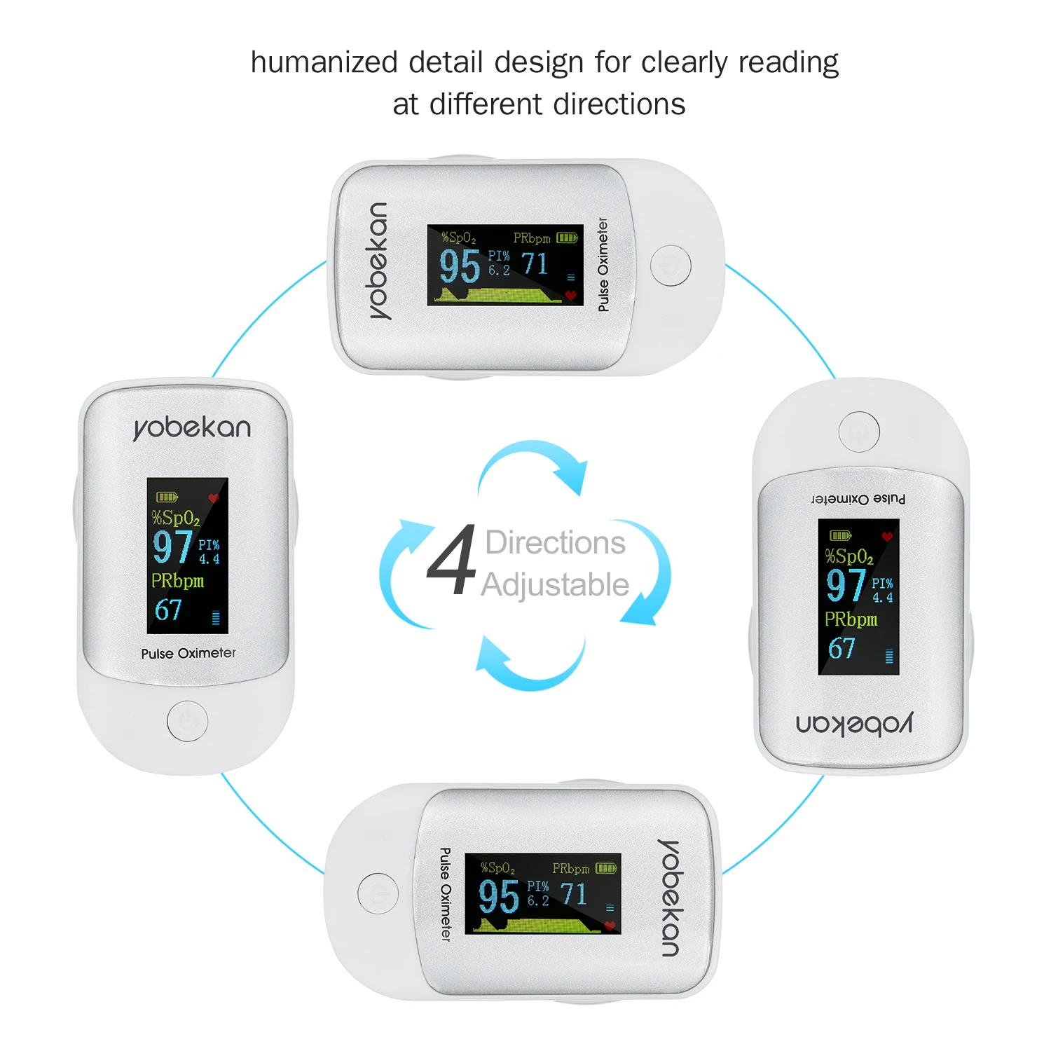 Небольшой по объему, светильник по весу и удобно носить с собой, Пальчиковый оксиметр удобен для мониторинга пульса, уровня кислорода в крови и перуанского указателя. Основные особенности работы одной кнопкой, быстрое считывание 8 с, автоматическое отключение 8 с, высокая точность с стабильной производительностью, четкий ЖК-дисплей для отображения PR, SpO2 и PI напрямую, И он имеет 4 угла дисплея для переключения.