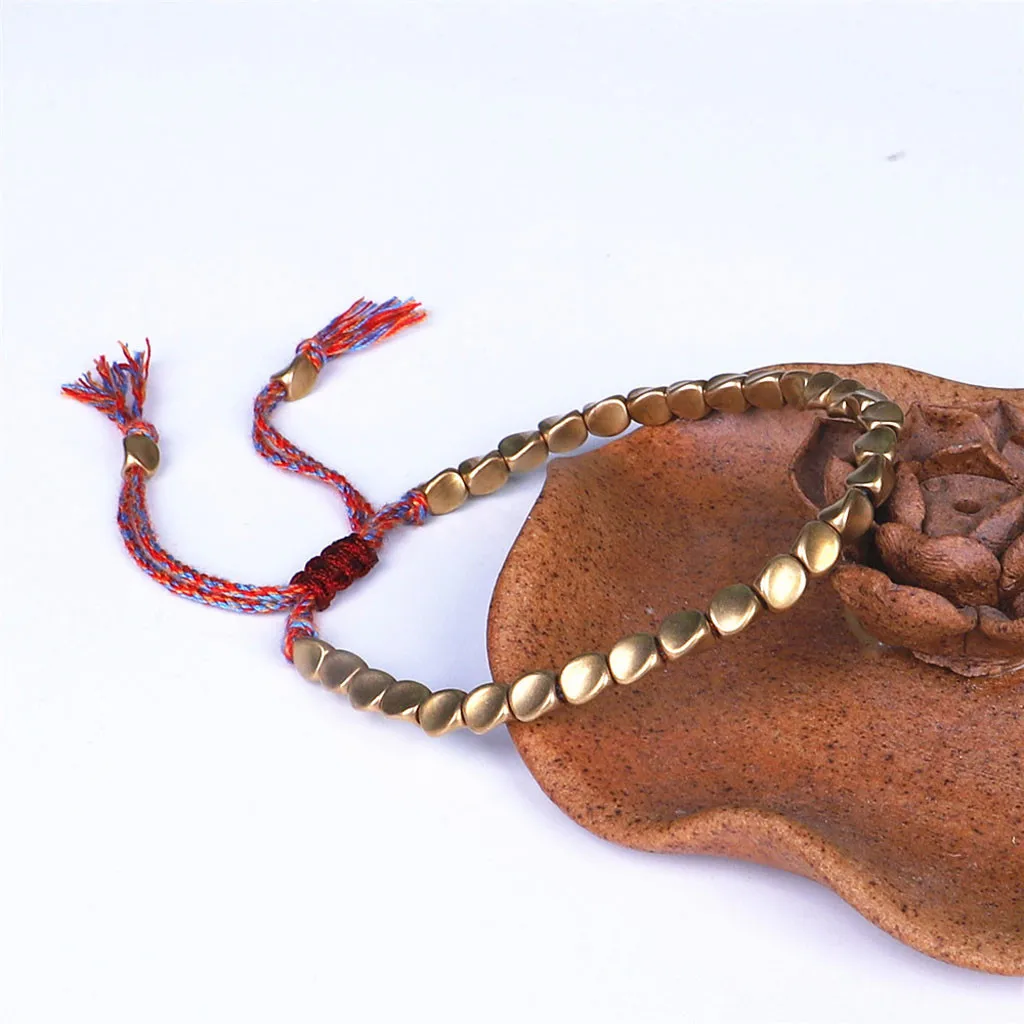 Браслет ручной работы из тибетской меди с бусинами и браслеты унисекс восковая нить