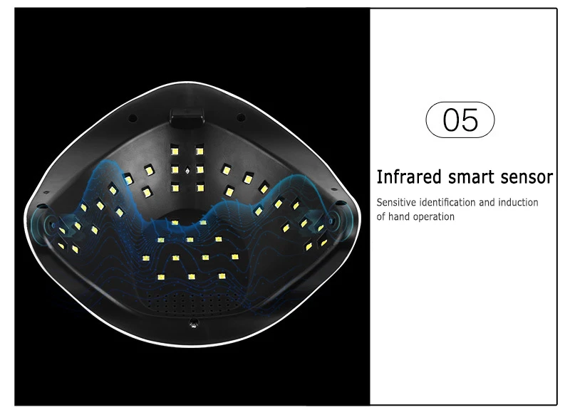 Интеллектуальная функция защиты от перегрева: уменьшает ощущение жжения и позволяет чувствовать себя комфортно во время облучения ногтей.