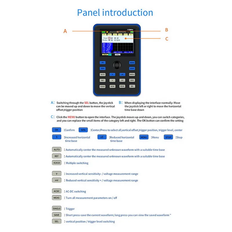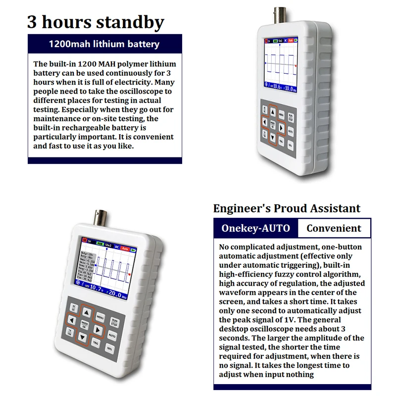 <Практичный, экономичный Ручной осциллограф. Частота дискретизации в реальном времени 500 м, аналоговая полоса пропускания 110 МГц.