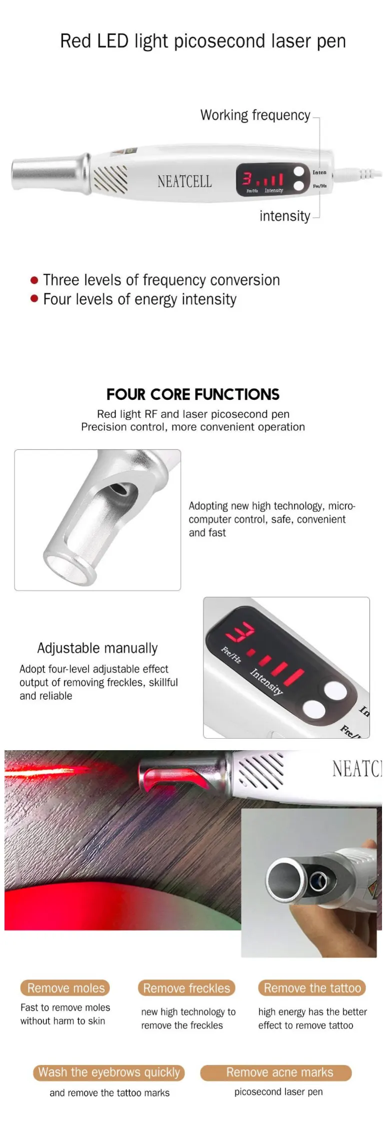 Beschrijving: Пигмент Breken dark: ручка De picosecond kan effectief lossen melanine in fijne deeltjes, om zo bevorderen metalisme van de huid en verminderen melanine afzettingen, ugebreide verminderen Sven verfijnen huid van binnen manier guen een gezonde gloed Профессиональная ручка veilige verwijdering: Zonder pijn de normale huid, geen bloeden en beetje pijn. Высокотехнологичные функциональные возможности en elektrische ion koolzuur, draaien de spanning ogenblikkelijke ontlaiding in elecric ion warmte voor cabonizing Meer sneller: Brede klant toepassinsgebied, krachtige en snelle energie breekt dark pigment direct. Майнер behandeling keer, beter behandeling effecten Meer veilig toepasing: Zijn pulse breedte is kort, het nauwelijks produceert licht en warmte effect. Lange-termijn gebruik zal zorgen voor meer duidelijk effect, het meer duurzaam en veilig Voordeel: 1. Коэффициент De laserstraal kan effectief lossen melanine in fijne deeltjes, om zo bevorderen huid Stofwisseling en verminderen melanine afzettingen. 2. sneller Лазерный луч Sneller en meer gericht laser energie te reinigen en verwijderen langdurige melanine problemen. 3. Эффективность Meer krachtige laserstraal, veroorzaken geen schade aan huid weefsels en schoon uitgebreider. 4. uitgebreide Verminderen sproeten en donkere vlekken, verfijnen van binnen manier. 5. veiliger Geen schade en pijn doet om huid weefsels, veilig te gebruiken. Функции: 1. Удаление Татуировок (Zwart en Blauw) 2. mol verwijdering 3. Темное пятно/пролет/пигмент verwijdering 4. wenkbrauwMicrobladingSchoonmaken 5.AcneMarkVerwijdering Пакет включает: 1x Лазерная ручка picosecond 1x oplaadkabel 1х Veilig bril 1x руль Let dat blauw licht machine alleen blauw licht, als je rood licht, u moet kopen rood licht machine. Voordeel: 1. Коэффициент De laserstraal kan effectief lossen melanine in fijne deeltjes, zodat Bevorderen stofwisseling en verminderen melanine afzettingen. 2. sneller Лазерный луч Sneller en meer gericht laser energie te reinigen en verwijderen lange- Staande melanine problemen. 3. Эффективность Meer krachtige laserstraal, veroorzaken geen schade aan huid weefsels en schoon meer Uitgebreid. 4. uitgebreide Verminderen sproeten en donkere vlekken, verfijnen van binnen manier. 5. veiliger Geen schade en pijn doet om huid weefsels, veilig te gebruiken. Verschil tussen Rood licht picosecond & Blauw licht picosecond -De power en effect van blauw licht picosecond pen is sterker. Het Nodig meer Professional bediening. Gelieve start van de laagste frequentie, Dan langzaam aanpassen aan de geschikt niveau. -Лазерная ручка De blauwe hebben 9 niveaus Frequentie modus, verschillende output Frequentie en golflengte. De flash gebied groter. -De rode laser pen hebben 3 Frequentie modus, de flash gebied is kleiner. Het Geschikt voor subtiele opperation. -Beiden voor verwijderen Tattoo, Mol, Spikkel ect, voornamelijk toepasing voor Melanine. De blauw licht golflengte 450nm. En de rood licht golflengte-850 нм. Hoe te kiezen Blauw Licht en Rood Licht? -Zowel van het kan verwijderen mol, lentigo, zwart Acne littekens, zwart en blauw tattoo , Wenkbrauw tattoo, wenkbrauw microblading en andere melanine. -Rood licht Picosecond pen voor persoonlijk gebruik thuis, kunt u bedienen door Jezelf. Zijn macht en effect is kleiner dan Blauw licht Picosecond pen -Blauw licht Picosecond pen voor schoonheidssalon gebruik of als iemand kan u helpen Bedienen, kunt u niet bedienen het zelf omdat je moet dragen de Beschermende, zijn macht en effect является grooter dan Rood licht Picosecond pen. -Als je iemand om u te helpen, we raden kopen blauw licht Picosecond pen Gebruik Stappen: 1. Подключите de power, en de machine-bekrachtigd, de digitale buis Displays 2. druk de "Inten" en "Fre/Hz" knop om de intensiteit en Frequentie. we suggereren Start de bediening van de laagste intensiteit en frequentie, dan upgrade Als nodig. Опмеркинг: 9 niveau-лазерная ручка laagste frequentie voor Blauwe. 3 niveau-laagste Frequentie voor Rode lase pen. 3. Анестезии с покрытием je bang bent van pijn, zal er een beetje Pijn bij gebruik van de laser pen, voelt als intraveneuze injectie. 4. Одежда beschermende bril Opmerking: Blauwe лазерная ручка moeten dragen beschermende bril omdat het houdt Knipperen, terwijl Rood lase pen niet nodig 5. zet het gat van de pen naar de plek waar u wilt bedienen Met, voor Blauwe laser pen, непрерывного druk op de Schakelaar knop, dan laser Licht verschijnt, остановите op de Schakelaar knop na 1-2 seconden, dan Herhaaldelijk. Opmerking: voor Blauwe лазерная ручка, raden wij blijven Niet в dezelfde locatie voor Meer dan 2 seconden. Лазерная ручка Voor Rode, raden wij blijven Niet в dezelfde locatie voor meer dan 1 seconden. 6. rood licht en blauw licht hebben een effect op melanine, na operatie, u Zal zien de mol turn meer zwart, dan kunt u stoppen, na paar dagen, het Zal vervgen verden. Voor sommige mol, het zal Cocon, niet vernietigen Het, laat het verlies Natuurlijk. 7. Чехол met reparatie essentie tegelijk na bediend, herhaal te gebruiken reparatie Essentie in de volgende dagen, niet blootstellen aan de zon, anders de huid Zal worden veren rood. 8. Повторите te doen dit elke paar dagen als nodig Советы: Voor de operatie, is het raadzaam om praktijk herhaaldelijk op zwart papier (Papier op andere kleur heeft geen effect) , dan bedienen om gezicht Geschoolde geschoolde Опмеркинг:( Lees Zorgvuldig!) 1. voor gebruik de picosecond pen, de huid moet worden bekleed met Verdoving. 2. na gebruik, het moet worden gecoat met reparatie producten helpen reparatie huid , Voorkomen ba