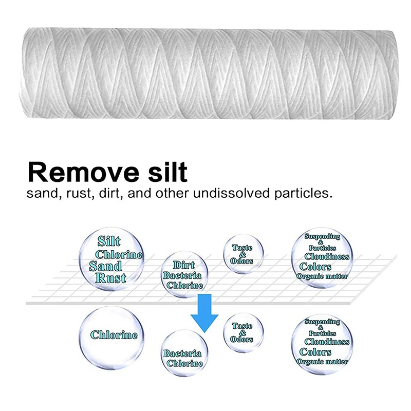 Качественная Фильтрация: струнный фильтр для воды имеет функцию глубокой фильтрации кровати, которая представляет собой сотовую структуру плотной внутри и редкой снаружи. Фильтр с намотанной нитью может уменьшить 99.99% песка, накипи, ржавчины, осадка, частиц.