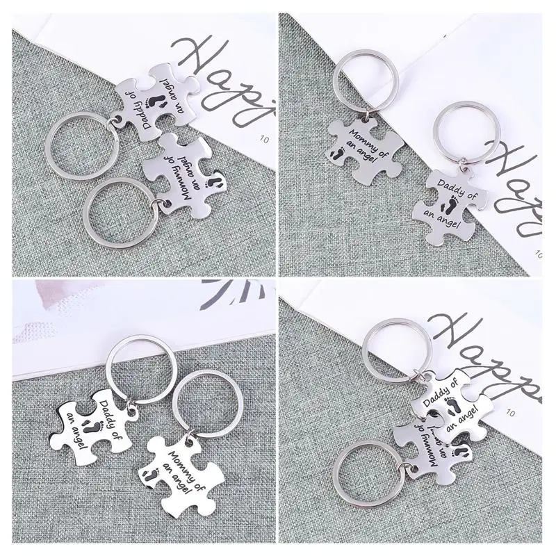 2 шт головоломка мама папа брелок с изображением ангела набор детский Мемориальный подарок сочувствие подарок выкидыша ювелирные изделия выкидыша Keepsake