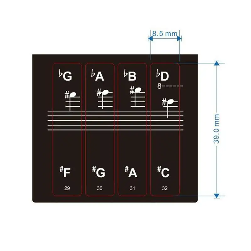4. Работает на любой клавиатуре: достаточно для любой клавиатуры или фортепиано с белыми клавишами 49, 61, 76 или 88. Наклейка покрывает четыре октавы.