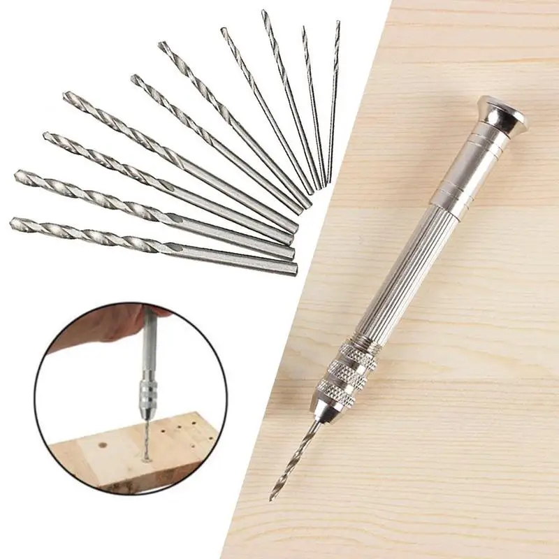 Высокое качество мини микро-алюминиевая ручная дрель с бесключевым патроном + 10 шт. сверла для сверления деревообработки вращающиеся инструменты