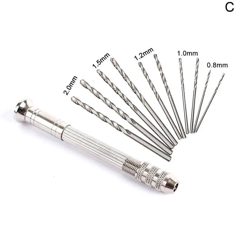 10 шт. мини сверла: 0.8mmX2pcs, 1.0mmX2pcs, 1.2mmX2pcs, 1.5mmX2pcs,2.0mmX2pcs,