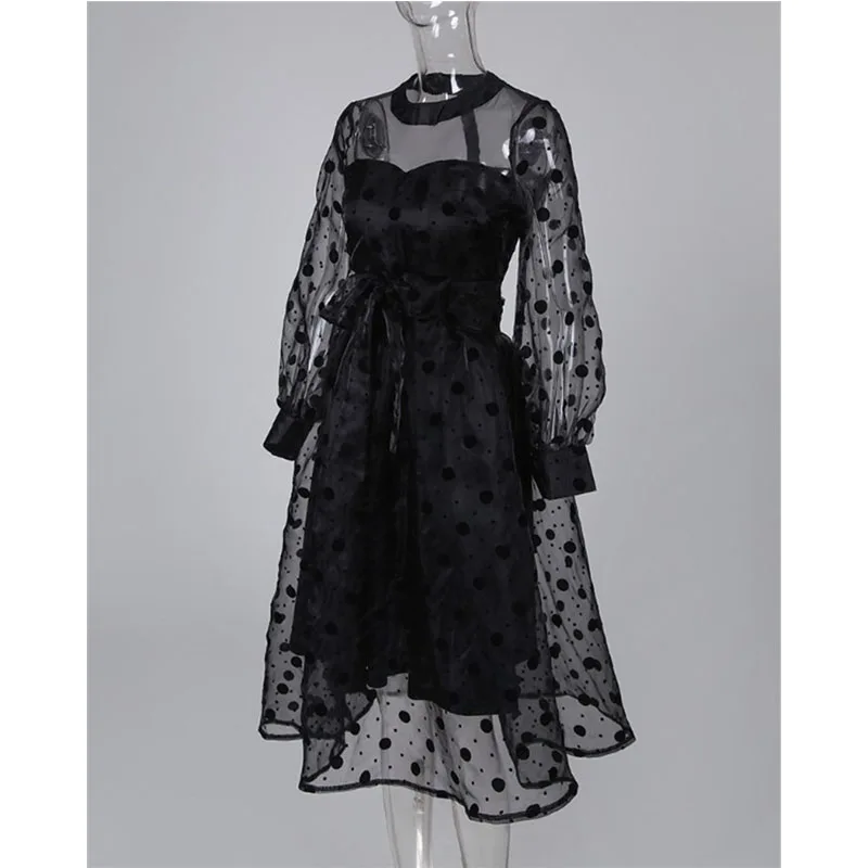 Новая женская обувь в стиле «Бохо рубашка с длинными рукавами сорочка, пляжное платье, платье макси платье сексуальное прозрачное нижнее белье в горошек вечерние летнее платье