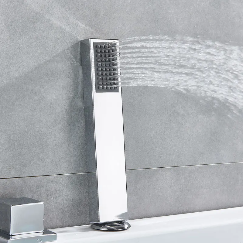 LED 5 PCs Bathtub Faucet Triple Handle Dual Spout Widespread Tub Faucet Sets Mixer Taps Bathroom Shower Faucet with Handshower