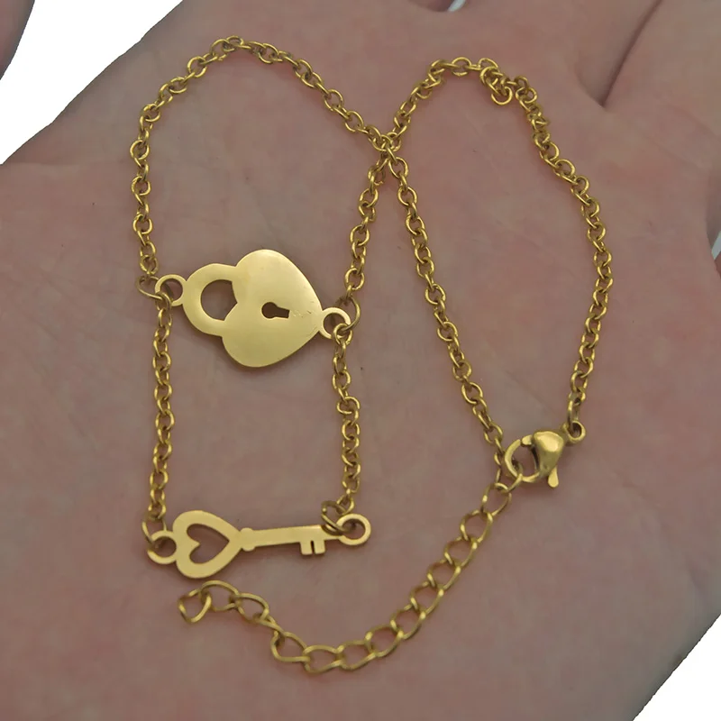 Подвески из нержавеющей стали с замком для влюбленных, уникальные браслеты, модные браслеты для влюбленных, цепочка с сердцем, пара ювелирных изделий, подарки