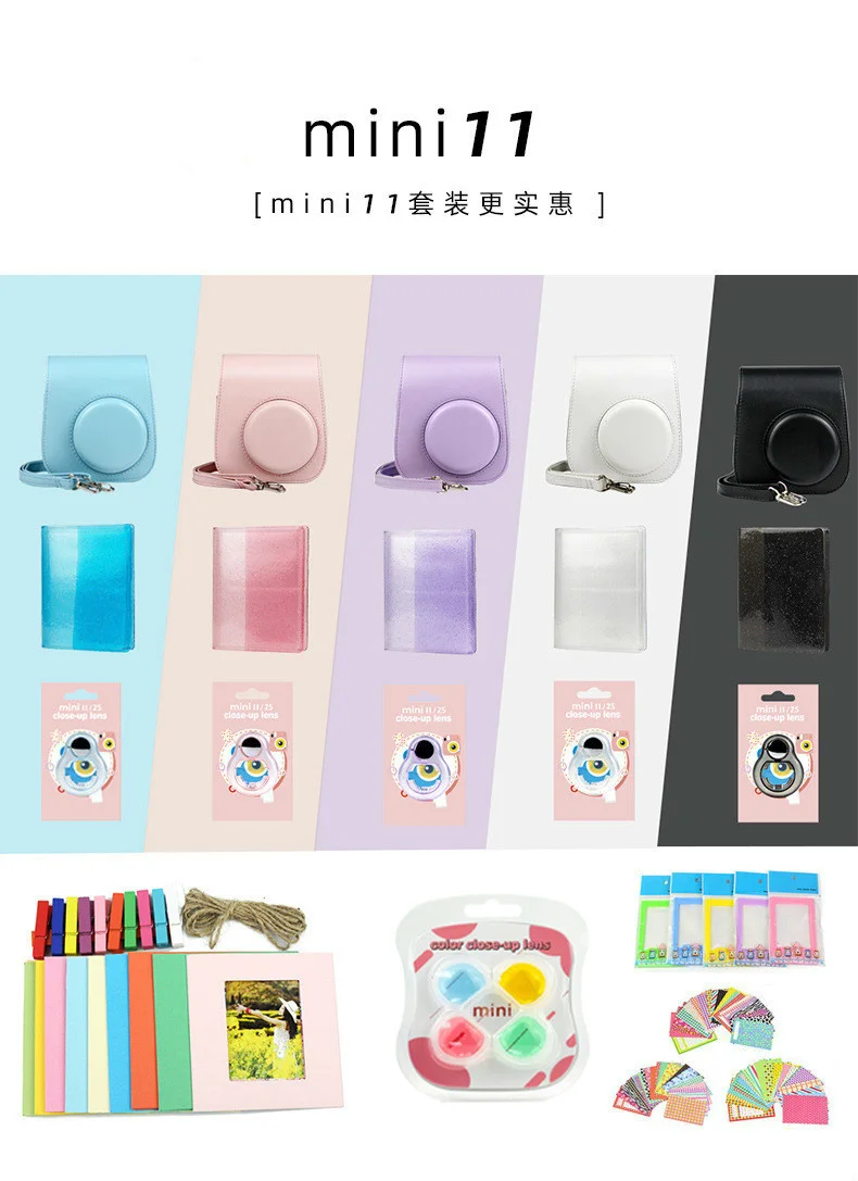 Для Fujifilm Instax Mini 11 чистый цветной чехол для камеры фильтр Стикеры для альбомов фоторамка селфи Объектив Набор аксессуаров для камеры