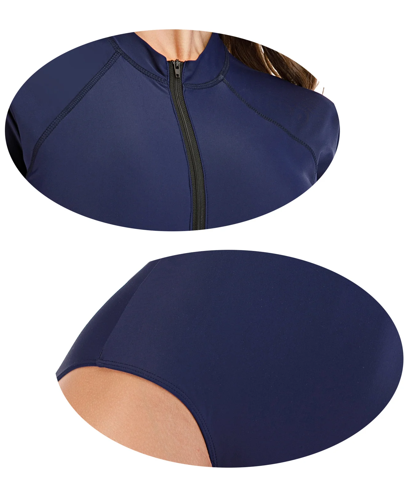 Полиамидный Быстросохнущий Цельный купальник, дышащий, однотонный, темно-синий, гидрокостюм для дайвинга, цельный, Рашгард, длинный рукав, купальник для серфинга, костюм для женщин