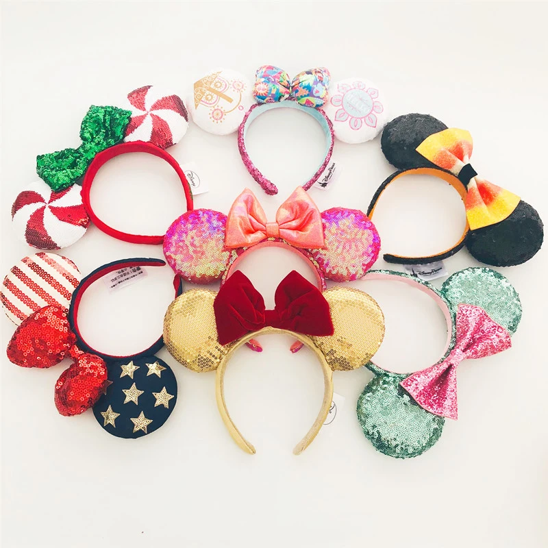 Милая большая бантик-ушки Минни, повязка на голову с блестками и ушками, костюм, повязка на голову, косплей, плюшевая повязка на голову для взрослых/детей, подарок