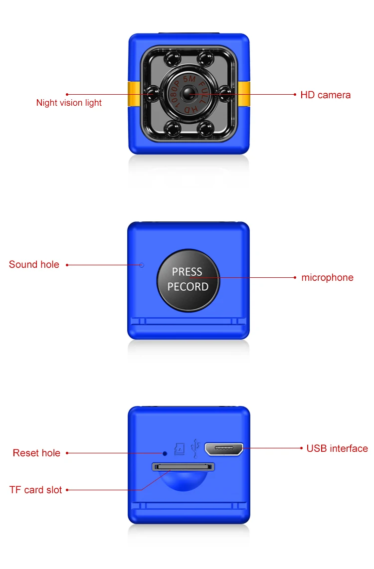 -Мини 1080P full HD Автомобильный видеорегистратор-Высокое разрешение full HD1080P-Поддержка 32 Гб TF карта Макс. (Карта памяти не входит в комплект)-пропорция изображения: 4 : 3-Система поддержки: Windows ME / 2000 / XP / 2003 / Vista, Mac OS, Linux-Емкость аккумулятора: 200 мАч-Время работы: Около 100 минут при 1080P 30 кадров в секунду-Время зарядки: около 2 - 3 часов-Напряжение зарядки: 5 В постоянного тока-Тип интерфейса: Mini 8 pin USB-Длина кабеля: 80 см Встроенная литиевая батарея устойчивая камера до 60 минут