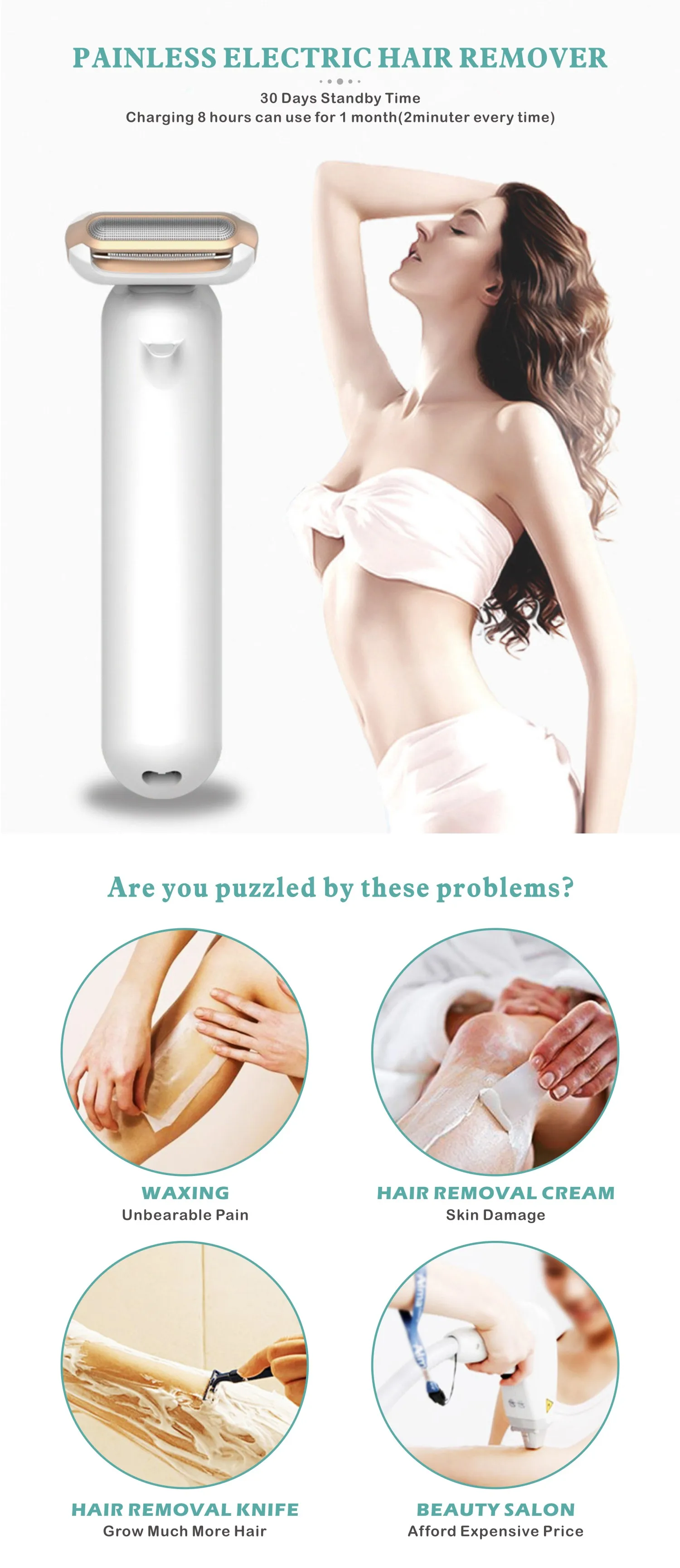 >Беспроводное использование: Женская бритва может быть беспроводной, использовать d в течение 30 дней после полной зарядки (2 минуты каждый раз). Идеально подходит для путешествий или деловых поездок.