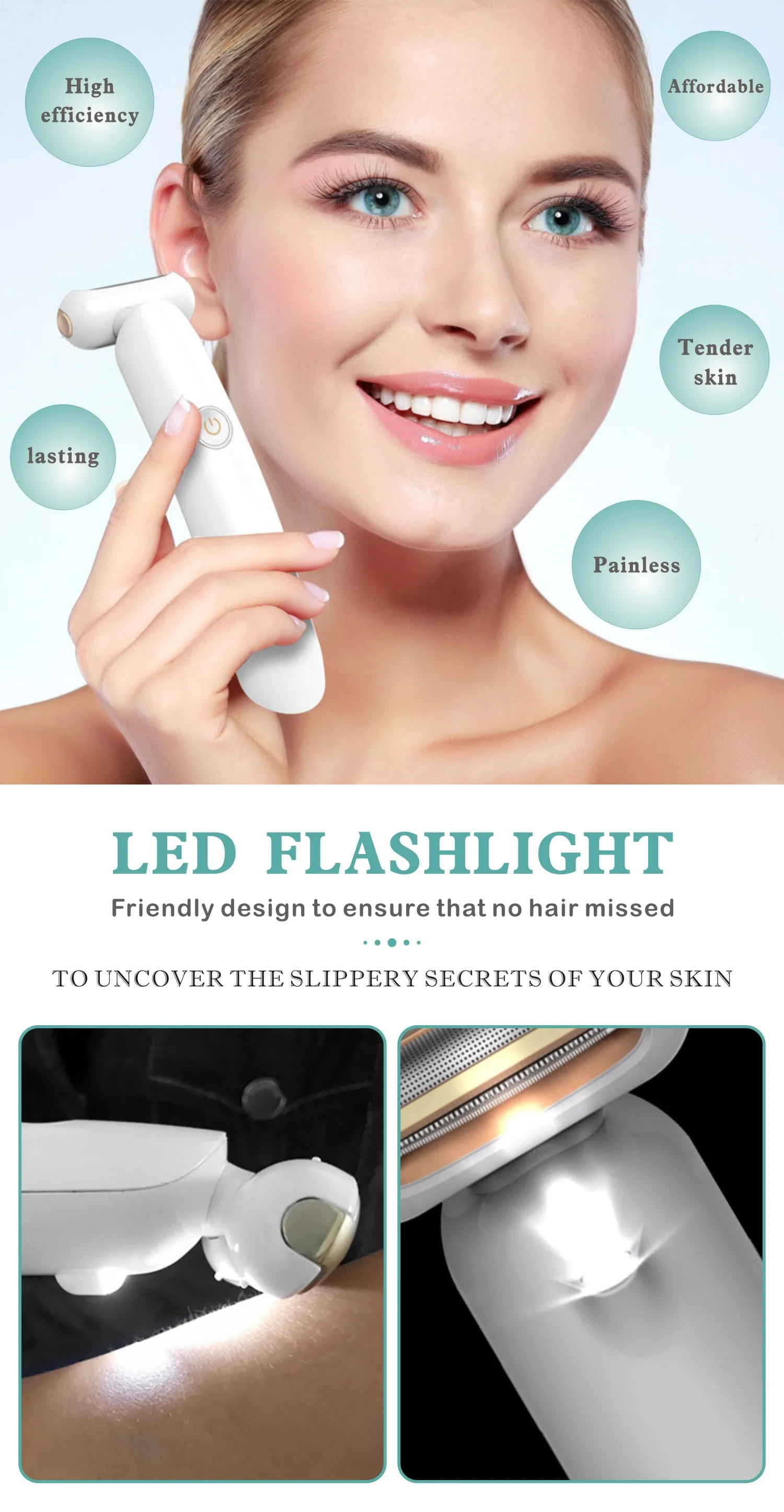 >Многофункциональная гипоаллергенная головка бритвы: электрическая бритва, предназначенная для волос различных частей женского тела, может комфортно и безболезненно удалять лицо, руки, ноги, подмышки или части бикини, отсутствие остатков и раздражения, делает кожу более гладкой
