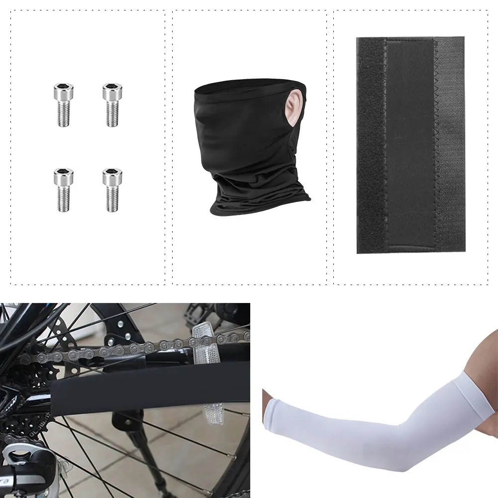 * 1. Посылка: 2 рамы для велосипедного чайника, 1 солнцезащитный чехол, 1 многоразовая маска для верховой езды, 1 защитная цепь для велосипедной рамы и 4 винта стандартного размера.