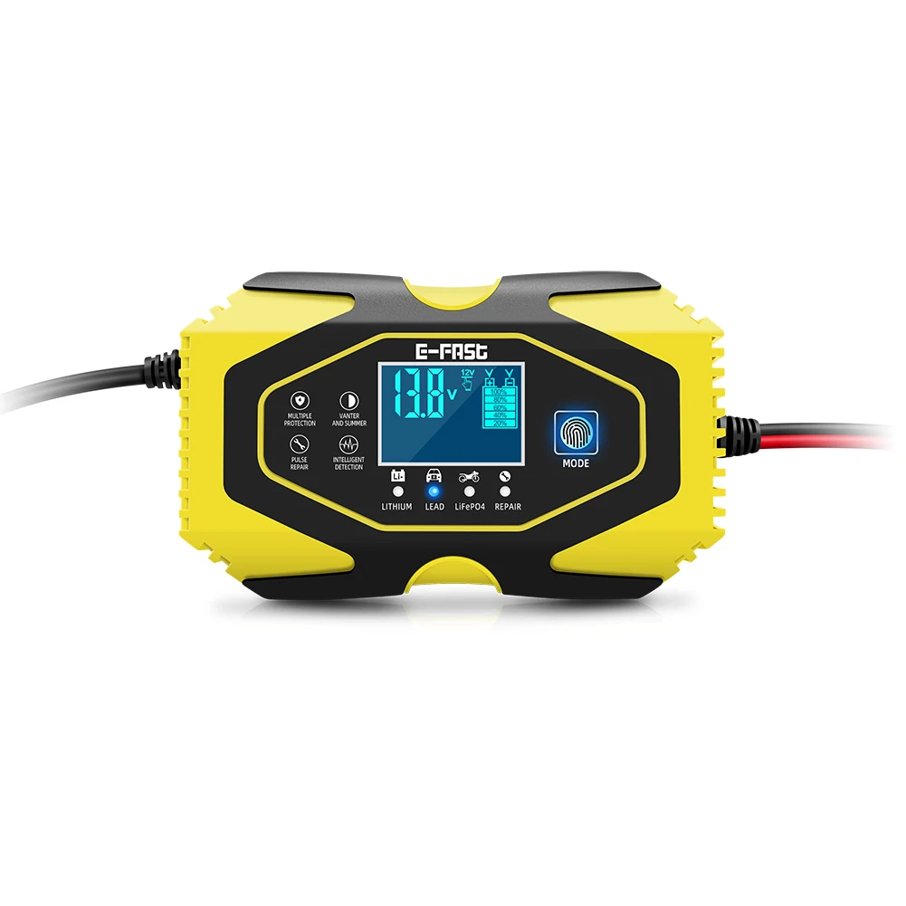 Автомобильное зарядное устройство предназначено для зарядки 12 В и 24 В литиевых, свинцово-кислотных, LiFePO4 батарей от 6AH-120AH(12 В),6AH-60Ah(24 В).
