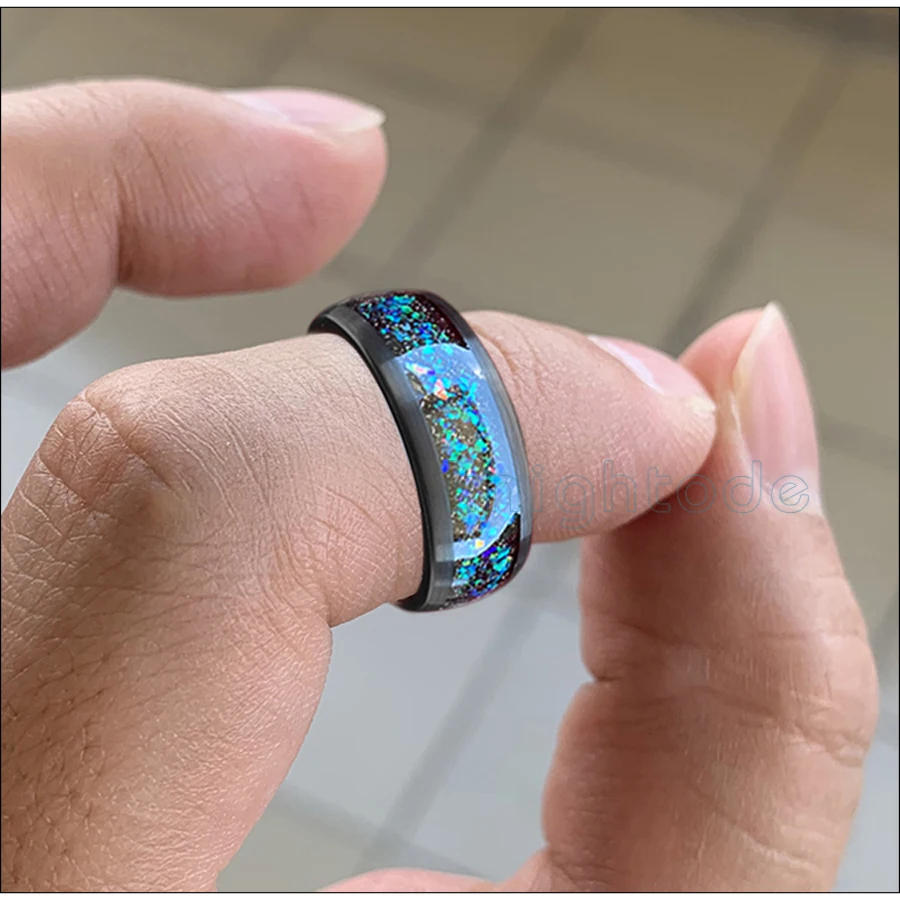8 мм черные вольфрамовые кольца серии Galaxy с опалом инкрустацией куполом