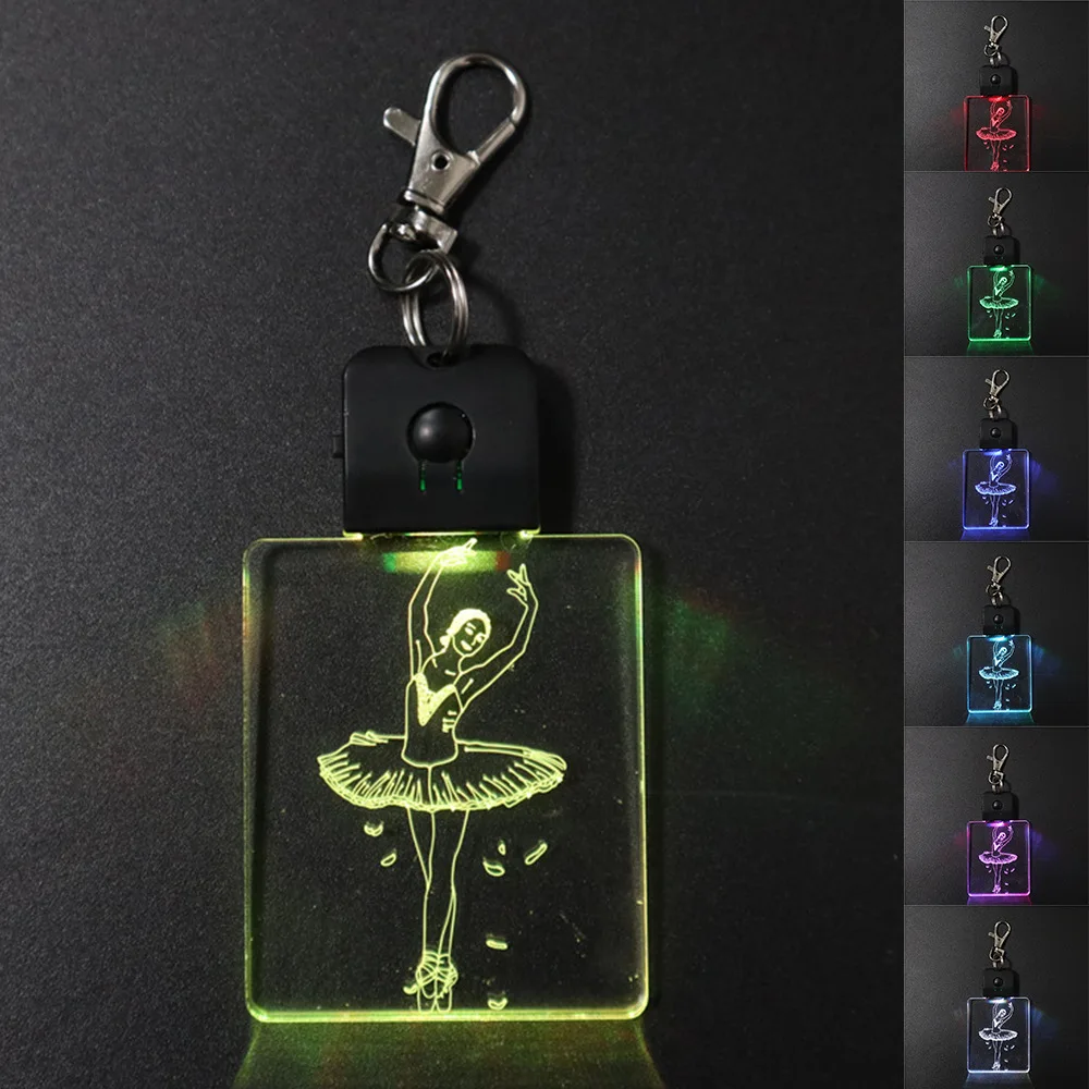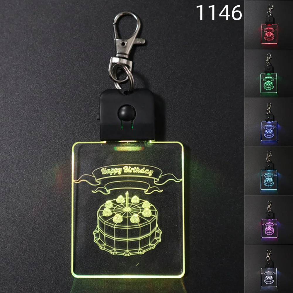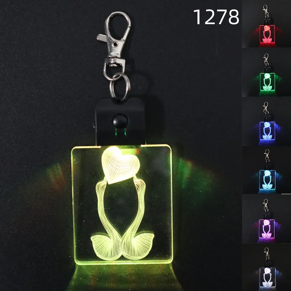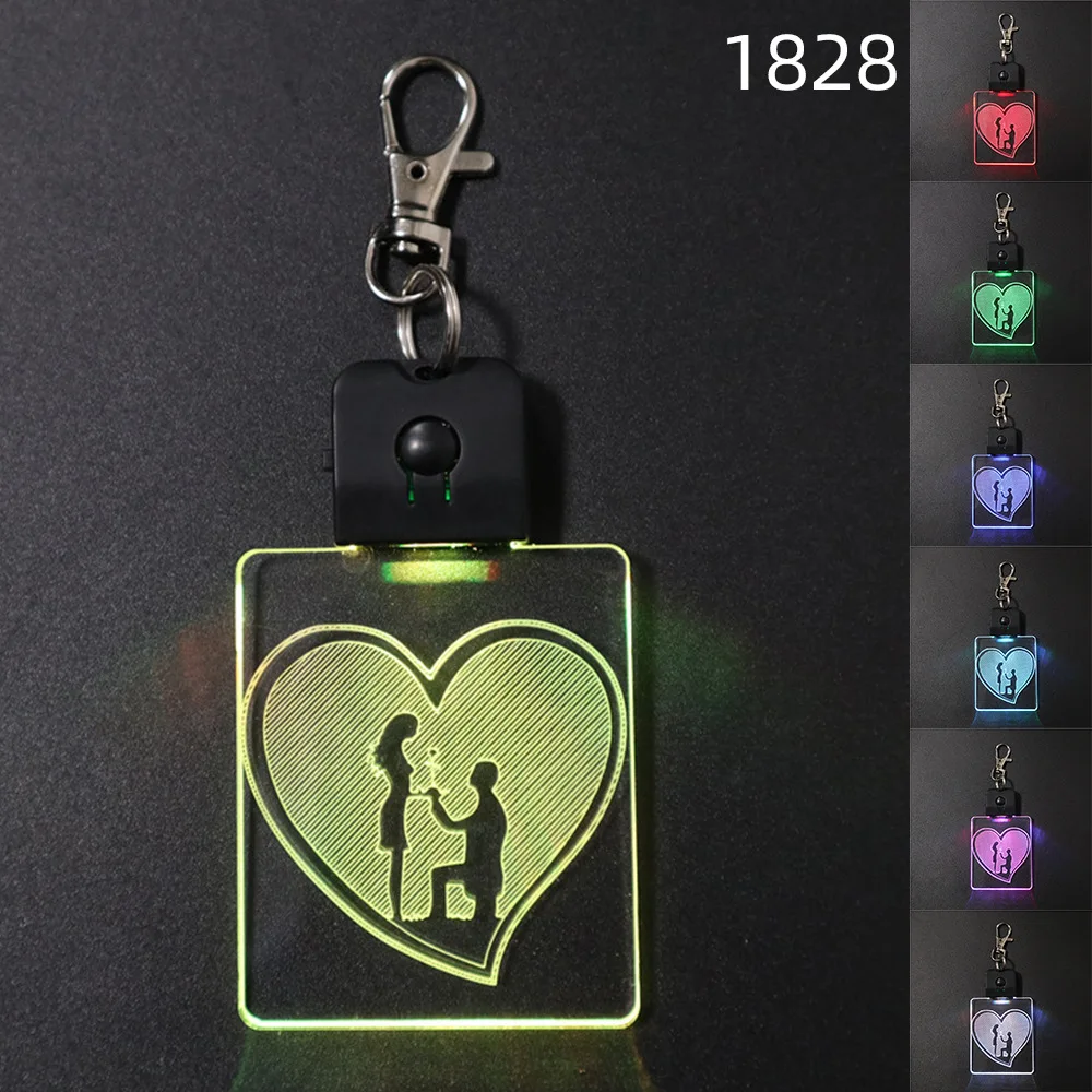 Прямая поставка креативный заказной квадратный светящийся акриловый брелок для ключей светодиодная цветная акриловая цепочка для ключей