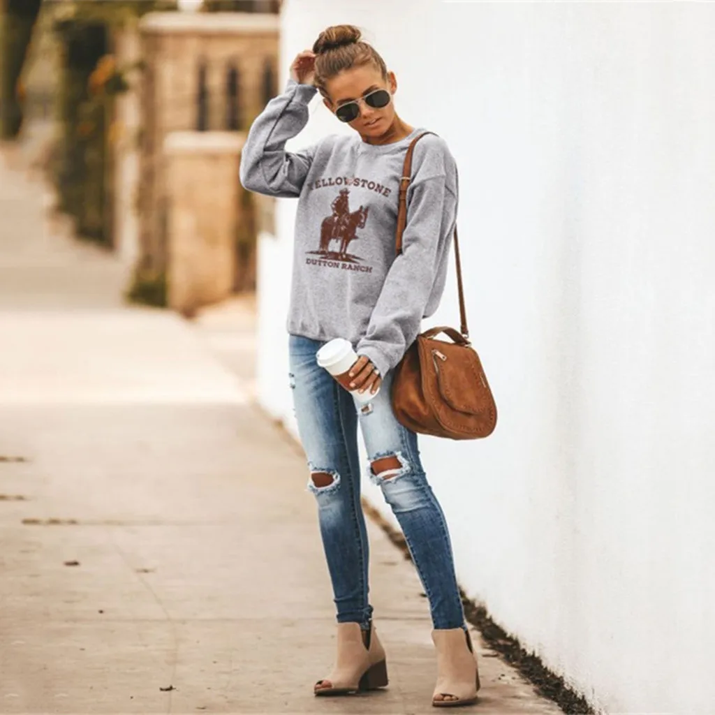 Женская толстовка с принтом; Пуловер с длинными рукавами; Топы; Блузка