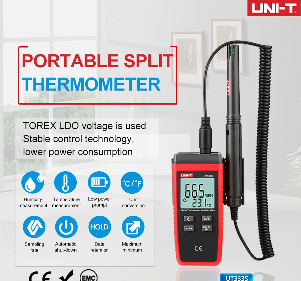 UT333S-это стабильный, безопасный и надежный Мини-Цифровой Измеритель температуры и влажности. С дизайном сплит-типа, это удобно и быстро измерить температуру точно в различных условиях. Он широко используется в хранении и транспортировке зерна, управлении файлами, управлении материалами, лесном хозяйстве и животноводстве, медицинском обслуживании, учебном эксперименте, государственном и домашнем хозяйстве.