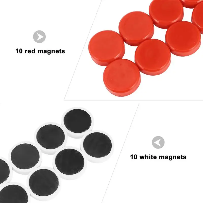 -Количество: 10 красных магнитов, 10 белых магнитов.