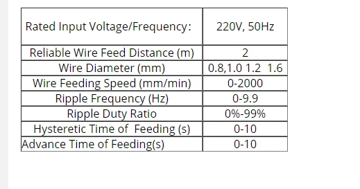 Машина подачи холодной проволоки с цифровым управлением для импульсной сварки Tig Описание товара: Китай производство TIG кормушка Преимущества: 1. Применяется для автоматической сварки TIG и сварки холодной проволоки TIG 2. Печатный двигатель 3. Анти-прилипание благодаря обратной съемке 4. С функцией инширования 5. Работает импульсная подача и задержка кормления Применение: 1. Точная пайка 2. Точечная Сварка 3. Автоматический TIG Характеристика китайского автоматического фидера проволоки TIG, управляемого шаговым мотором 1. Используется для ручной сварки, аргонно-дуговой сварки, плазменной сварки и лазерной сварки; 2. С функцией подачи проволоки hysteretic и волочения проволоки заранее; 3. Не только может управляться автоматически одной машиной, но также может общаться с хост-компьютером (485 сообщений); 4. Подача и рисование проволоки не только контролируется педалью, но также может контролироваться синхронно с помощью высокочастотного переключателя сварочного фонаря; 05. Скорость подачи 0-1000 мм/мин. Клиент также может настроить скорость. Ошибка повторяемости подачи проволоки составляет менее ± 5%. Продукт имеет функцию непрерывной и прерывистой подачи проволоки, в то время как частоту и dutyfactor прерывистого кормления можно регулировать; 6. Сварочной проволоки с диаметром 0,8 мм, 1,0 мм, 1,2 мм и 1,6 мм-все это может подаваться. Надежное расстояние подачи составляет не менее 2 м; 7,1 кг, 5 кг или 10 кг провод катушки могут быть использованы для всех путем замены ось проволочной катушки; 8. Сварочная проволока изготовлена из нержавеющей стали, углеродистой стали, мягкой стали, меди, алюминия. Мы не несем ответственности за любые таможенные пошлины или налог на импорт, это ответственность покупателя