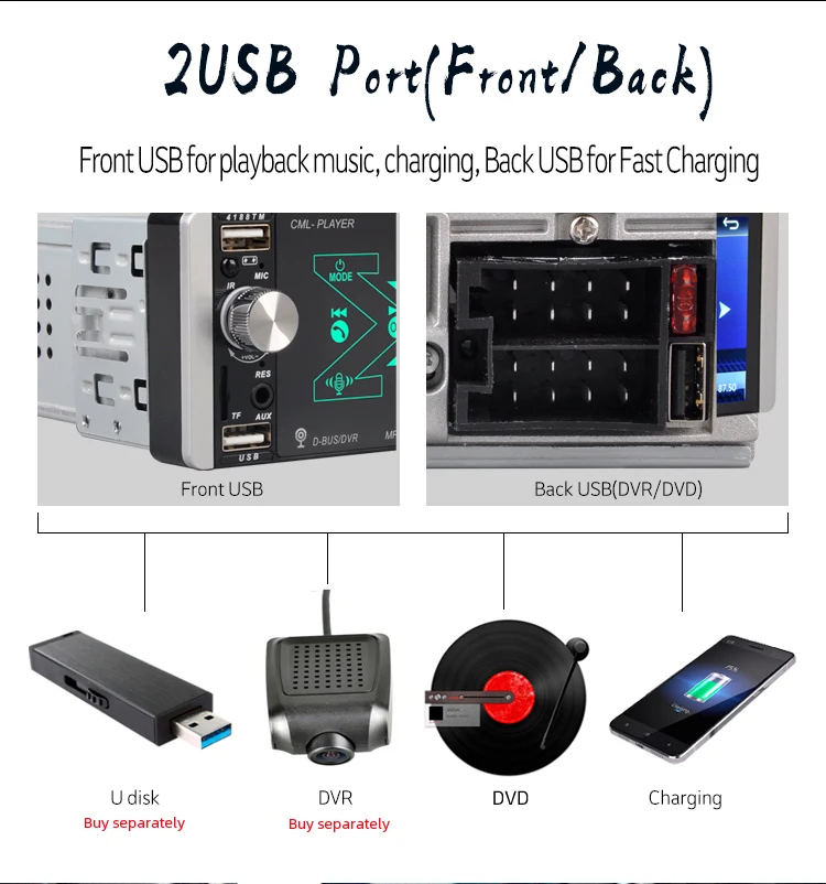1. Функция зеркальной связи: MP5 плеер может зеркально соединять с телефоном Android и телефоном IOS с помощью usb-кабеля, вы можете прикоснуться к экрану MP5 для работы с телефоном Android Телефон IOS не может работать с сенсорным экраном MP5 (не подходит для всех телефонов) 2. Интеллектуальная голосовая и звуковая система управления транспортным средством Поддержка Apple SIRI, чтобы автомобиль был оснащен функцией Голосового AI. Телефон Android через C-PLAY подключение, чтобы автомобиль был оснащен функцией Голосового AI. Нажмите и удерживайте кнопку голосовой функции на экране или клавишу голосовой функции на пульте дистанционного управления рулевого колеса в течение 2-4 секунд, чтобы вызвать голосового ассистента, и вы можете быстро решить вашу проблему: вызов xxx, воспроизведение музыки, отправка WeChat друзьям, включение громкости и т. Д. 3. Семь цветов подсветки: поддержка семи цветов подсветки, вы можете выбрать семь цветов в качестве подсветки 4.Bluetooth может работать с большинством устройств, подключайте телефон, чтобы держать руки свободными, когда приближается вызов, кроме того, вы даже экономите сумму денег, чтобы купить бизнес-наушники 5. Функция заднего вида: Поддержка входа камеры заднего вида, вы можете увидеть видео на экране MP5, хотя камера заднего вида, при поддержке вашего автомобиля 6. Пульт дистанционного управления: Поддержка дистанционного управления, вы можете управлять устройством с помощью пульта дистанционного управления, запуск/остановка/следующая/последняя музыка или фильм, радио, включение/выключение устройства 7. Функция USB: Поддержка большой памяти USB (u-диск), вы можете скачать музыку или фильмы, которые вам нравятся, играть на этом устройстве 8. Управление рулевым колесом: быстрое переключение функций, которые вы хотите с рулем вашего автомобиля 9. Поддержка USB зарядки телефона: не беспокойтесь о том, что ваш телефон не работает снова 10. Воспроизведение u-диска/AUX: поддержка u-диска для воспроизведения, вам нужно только вставить u-диск в интерфейс машины для воспроизведения музыки, Поддержка внешнего входа AUX (plug) 11. Высококачественное цифровое стерео fm-радио, автоматический режим поиска каналов, полуавтоматический и точный метод регулировки. Слушайте музыку, новости и информацию о дорожном движении, где угодно и наслаждайтесь 12. Функция часов и функция отключения звука, выбор различных эквалайзеров звуковых эффектов 13. Задний вход микрофона, выход сабвуфера