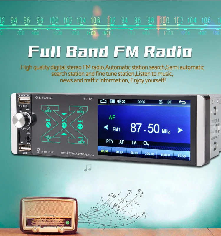 Усилитель на полевых МОП-транзисторах: 45 Вт x 4 Максимальная выходная мощность Радио диапазон: FM Tf-карта: Поддержка AM: Поддержка RDS: Поддержка