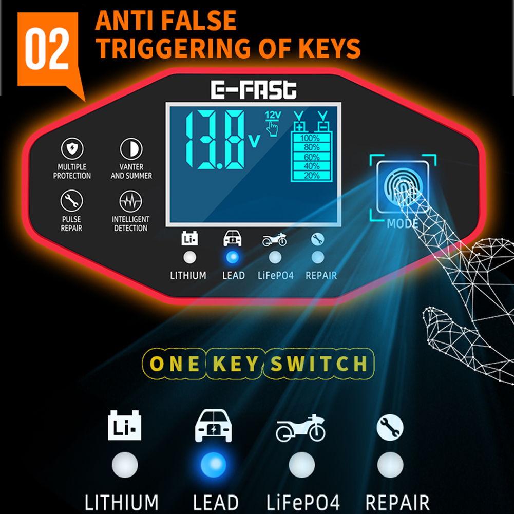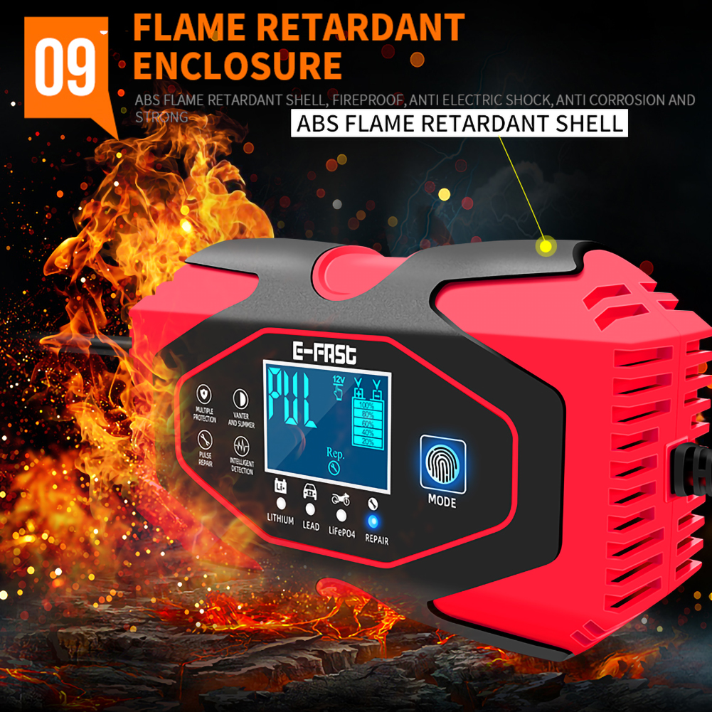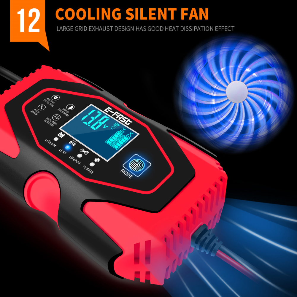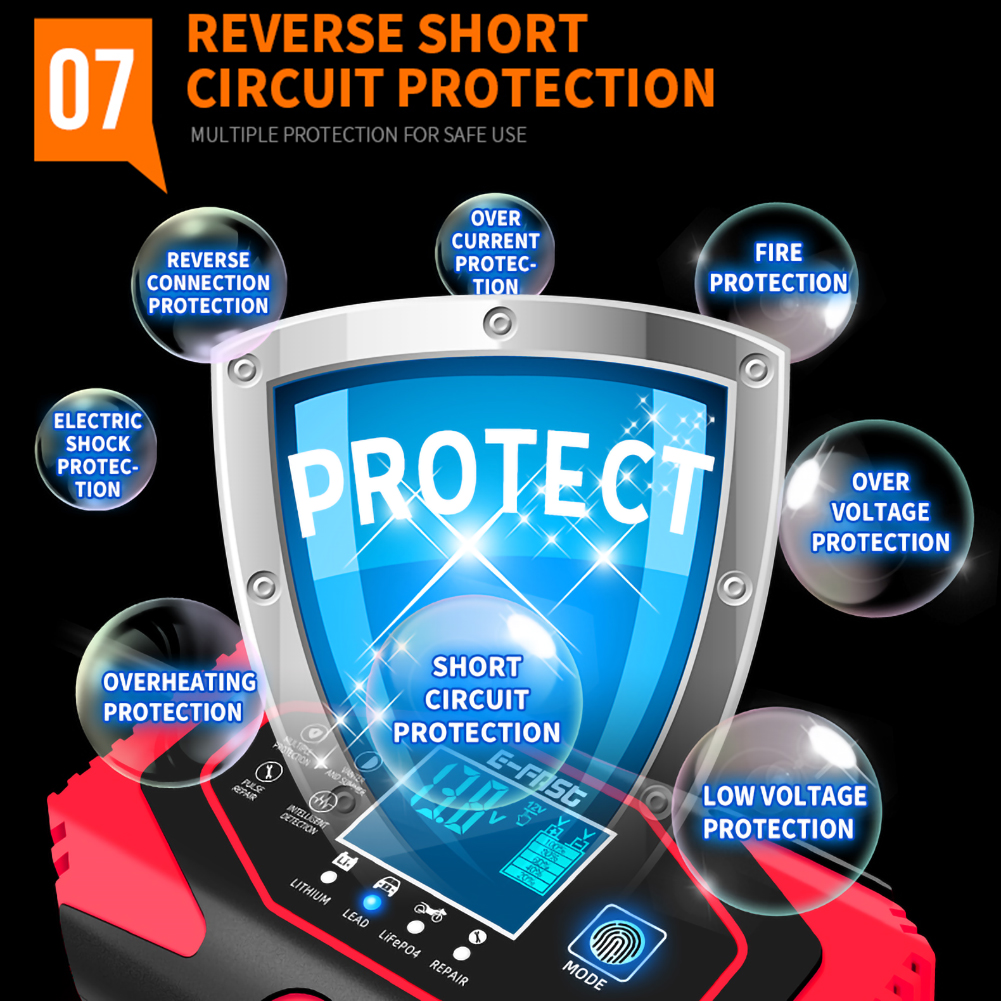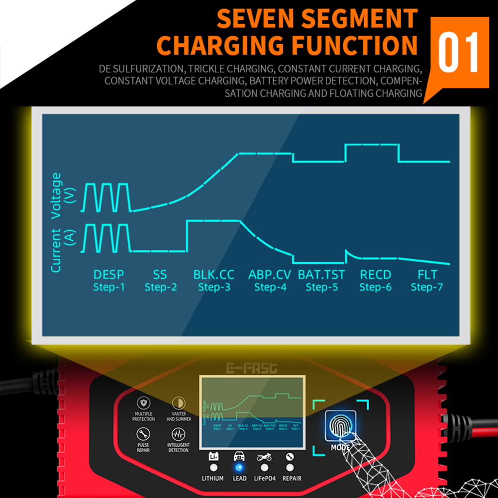 7-ступенчатые зарядные устройства: подходят для большинства типов батарей, включая кальций, гель и AGM, влажные батареи.
