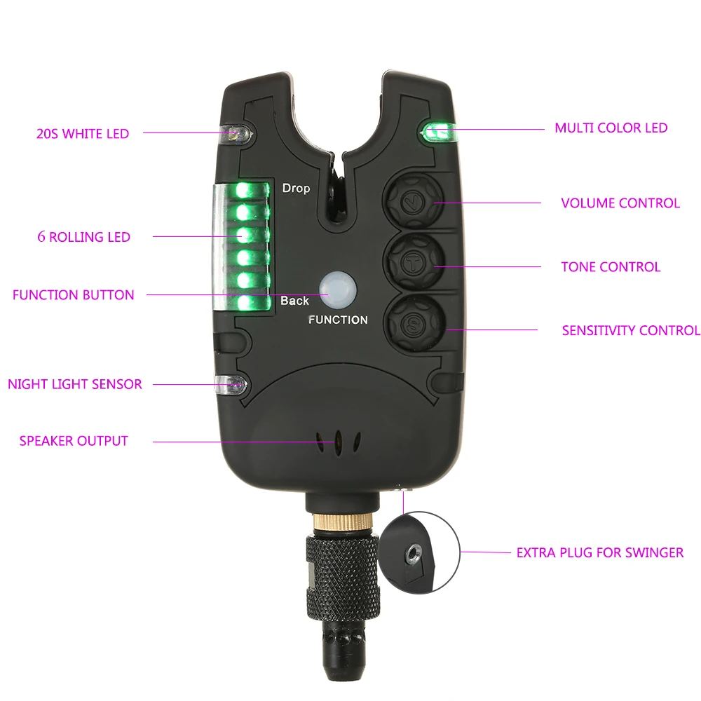 Этот светодиодный индикатор с сигнализацией для ловли рыбы очень чувствителен к рыбе, которая глотает приманку, это звучит громким, так что вы можете уйти или отдохнуть более ста метров, не беспокойтесь о том, что не хватает крючков и удочек.