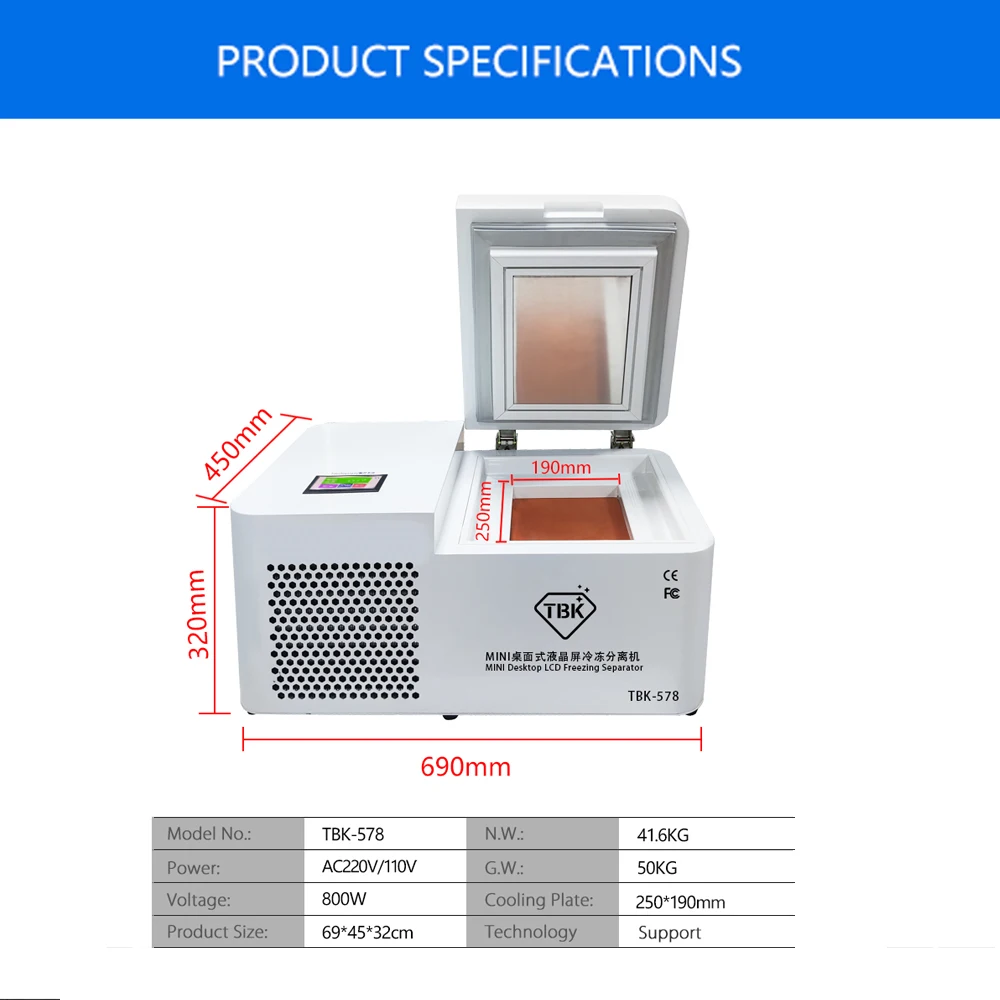 TBK - 578 mаquinas de eliminación de vidrio congelado para Samsung Edge para iPhone Tablet pantalla LCD separador Mini Escritorio