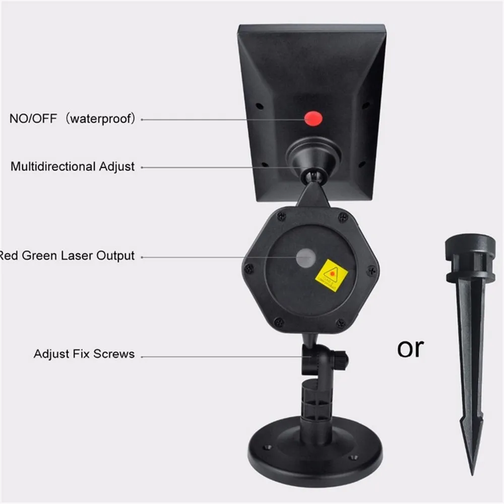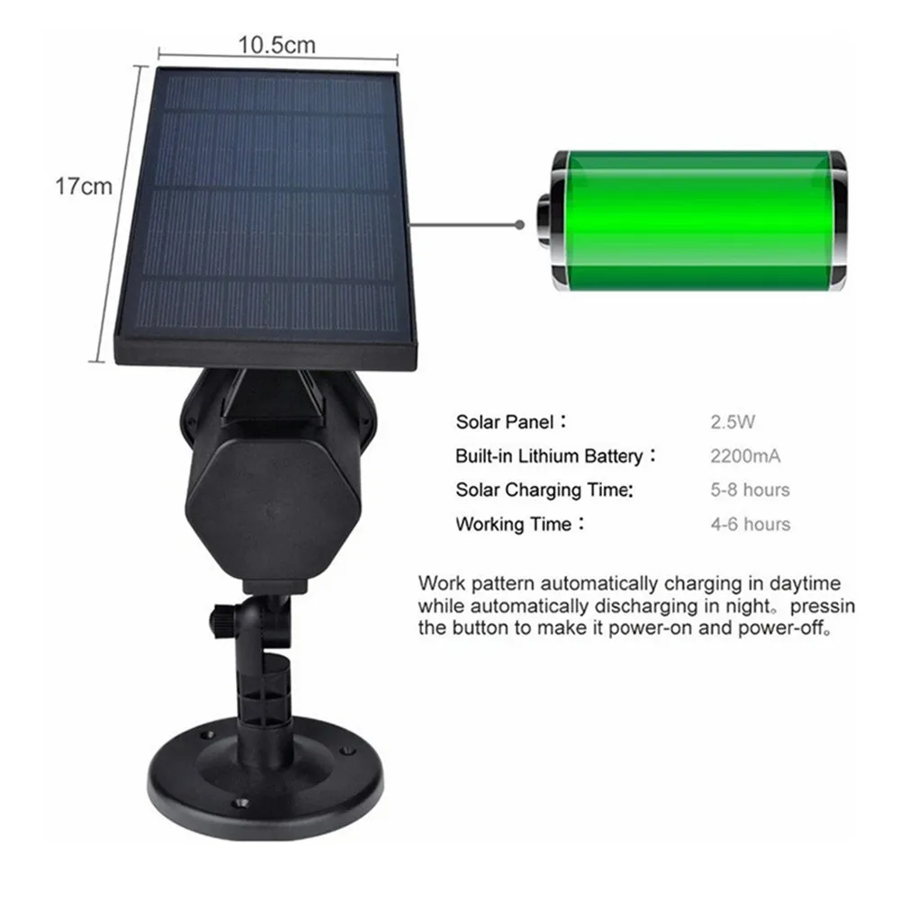 Особенности: Модернизированный Светодиодный лазерный проектор лампы для сада лужайки двора Изготовлен из прочного и стильного АБС-пластика Солнечной энергии наземный светильник Поставляется с автоматическим датчиком заката до рассвета Проводка не требуется и безопасна для использования вокруг детей и домашних животных Два литиевых аккумулятора 2200 мАч в комплекте Идеально подходит для районов, где обычные электрические поставки недоступны Светодиодный светильник цвет: красный + зеленый Параметры: Солнечная панель: 5 Вт Встроенный литиевый аккумулятор: 2000 мА Время работы: 5 часов Время зарядки: 8-10 часов Светильник источник света: красный светильник 100 мВт, зеленый светильник 30-50 мВт Длина волны: зеленый светильник 532 нм, красный светильник 650нм Режим: Автоматическая зарядка в течение дня, Автоматическая разрядка в ночное время Режим работы: статический, динамический, постепенное изменение, мигание Размер (прибл.): Общая длина: 38 см/14.96in Солнечная панель 15 см/5.91in Погрешность в 3-5 см является нормальной из-за ручного измерения. (единица измерения: см) Корпус: ABS (пластик) Посылка включает в себя: 1 X Солнечный лазерный проектор светильник