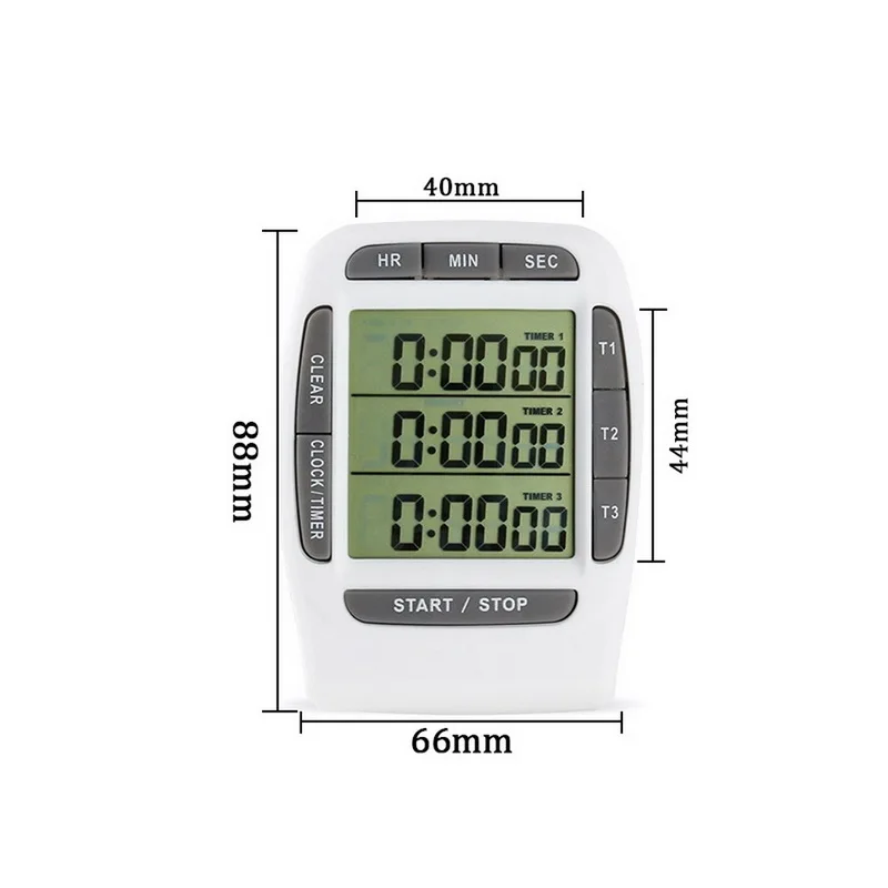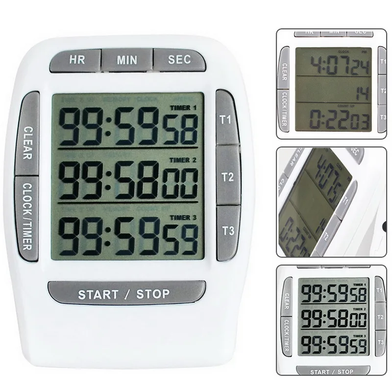 ** Три дисплея: вы можете иметь все три таймера (Timer1-Timer3), выполняя отсчет операций одновременно. Он может быть установлен с довольно широким диапазоном от 1s до 99 часов, 59 минут и 59 секунд.