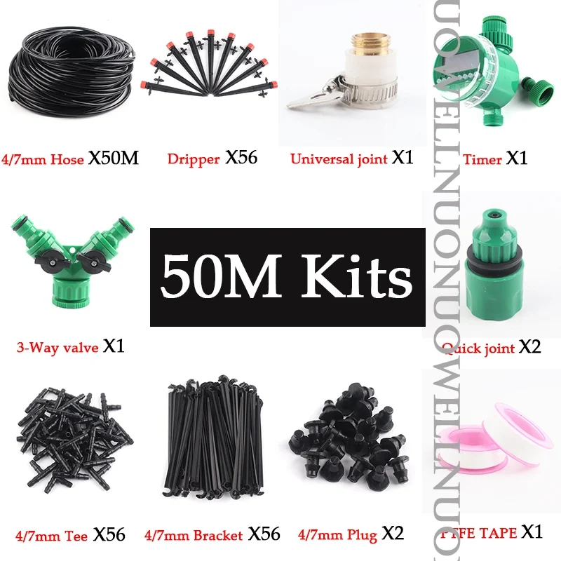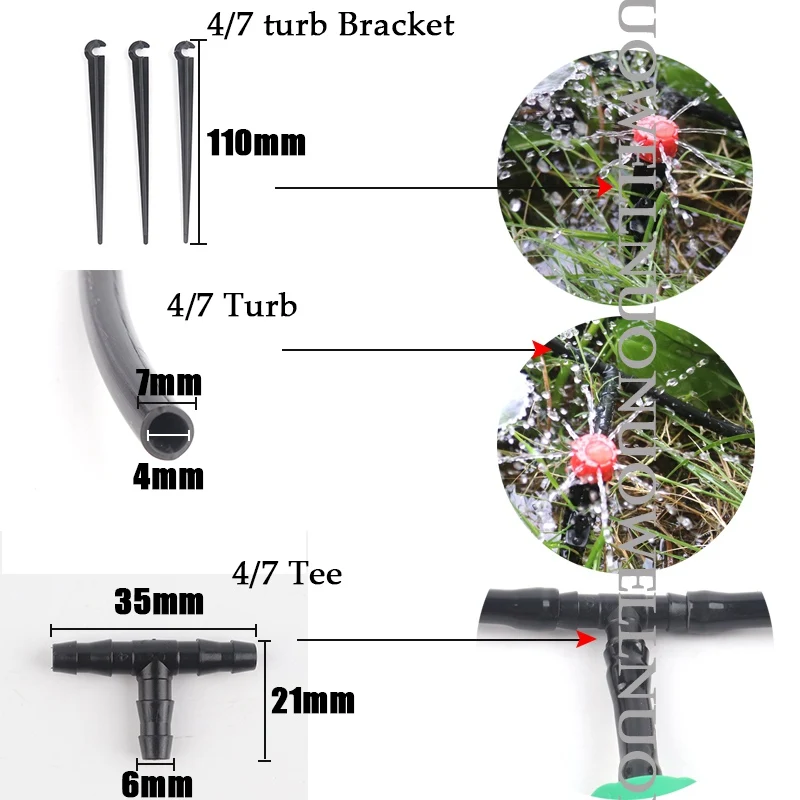 -Тип: Садовые наборы для полива -Материал: ПП-пластик -Поток: 0 ~ 70 л/ч -Рабочее давление: 1 ~ 3 кг -Спрей радиус: 0 ~ 0,5 м -Нет с двумя трубами для холодной и горячей воды: 4/7 мм шланг -Наборы инкульдинг: * 4/7 мм шланг X 10 ~ 50 м • Таймер X 1 * 3-way jiont X 1 * Дриппер X12 ~ 56 * Универсальный Шарнир X 1 * Quick jiont X 2 * 4/7 мм тройник X 12 ~ 56 * 4/7 мм кронштейн шланга X 12 ~ 56 * 4/7 мм шланг штекер X 2 * PTFE Лента X 1 -Применение: ①Garden для полива и орошения ②Фрукты дерево и овощи орошение ③Drip для полива и орошения в детскую комнату ④Охлаждение животноводства и т. Д.