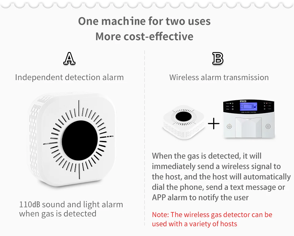 1. Может использоваться независимо. 2. Его можно использовать со всеми хостами в нашем магазине. 3. Сигнализация compund может обнаруживать окись углерода и дым. 4. Другие магазины должны соответствовать следующим условиям: Частота 433 МГц и IC 1527 Диапазон беспроводной передачи может достигать 200-300 м Нет пропуска сигнала тревоги. Высокая термостойкость.