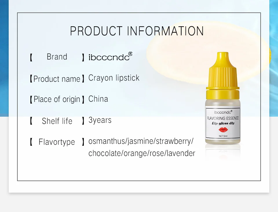 Емкость: 5 мл Вкус: шоколад, жасмин, лаванда, османтус, роза, Оранж, клубника Количество: 1 шт. Подходит для: блеск для губ/Губная помада diy, изготовление свечей