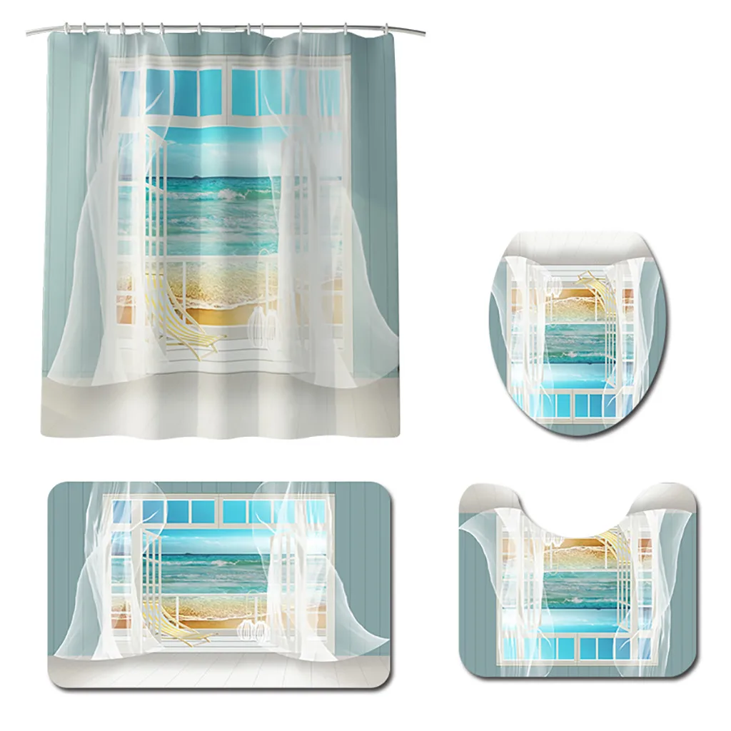 Набор нескользящих ковриков из полиэстера для туалета, 4 шт. Занавеска для душа в ванную комнату