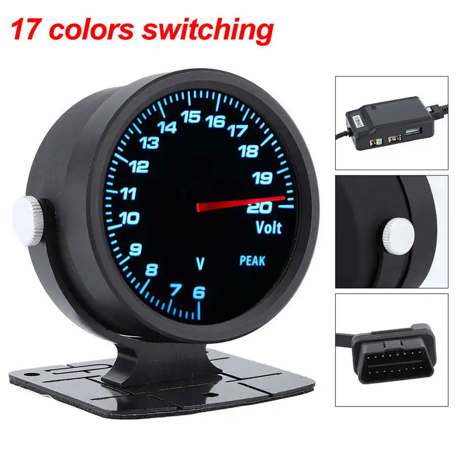 CAMMUS 60 мм/2,4 дюйма вольтметр тонированный 17 цветов OBD2 измеритель гоночного напряжения Авто вольтметр