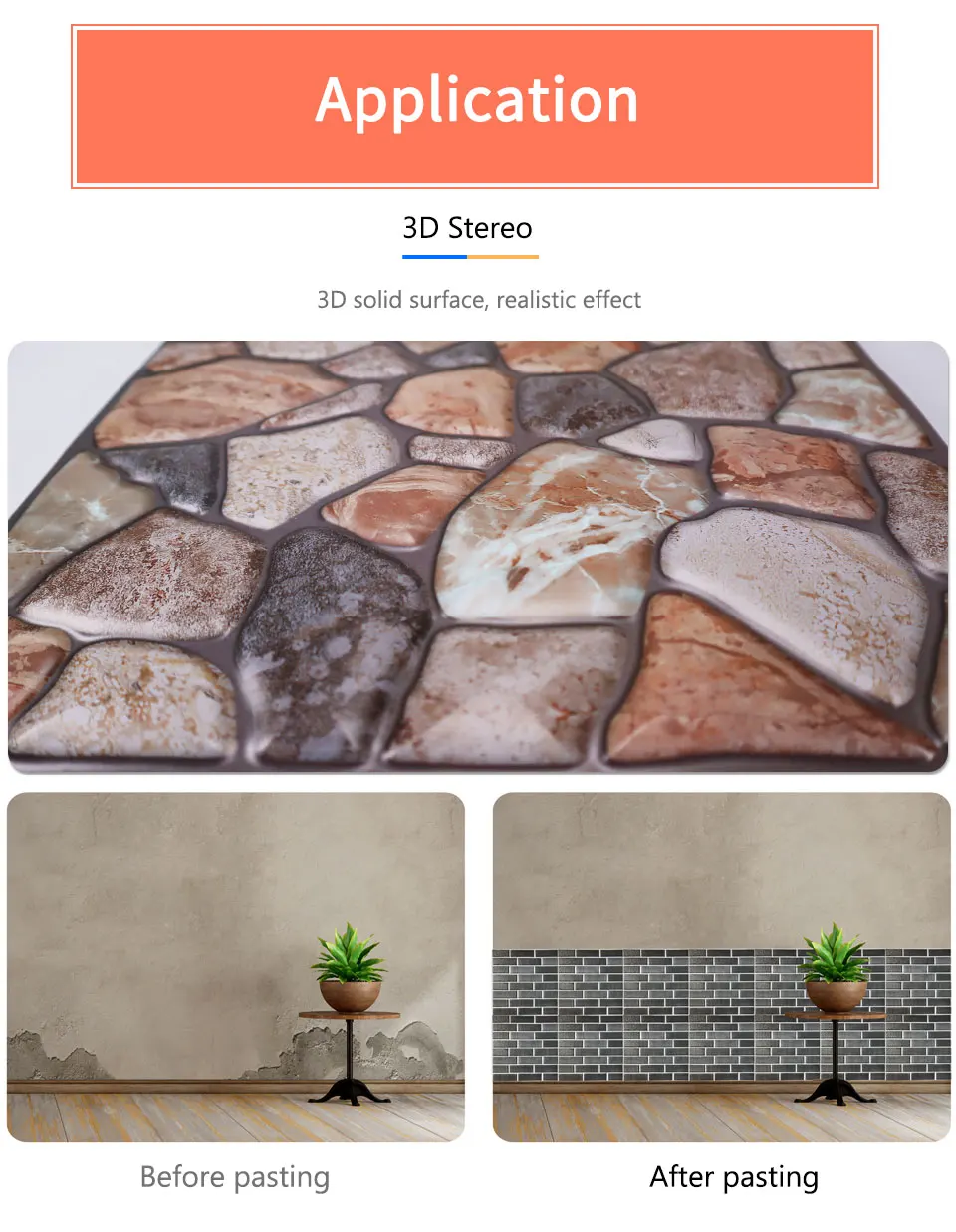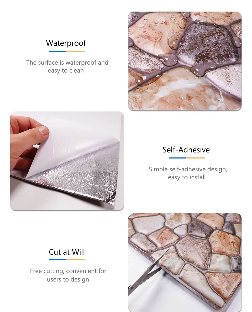 3D обои, мраморные кирпичные пилки и самоклеющиеся наклейки на стену, водонепроницаемые, сделай сам, кухня, ванная комната, домашняя настенная палка, ПВХ плитка, панель