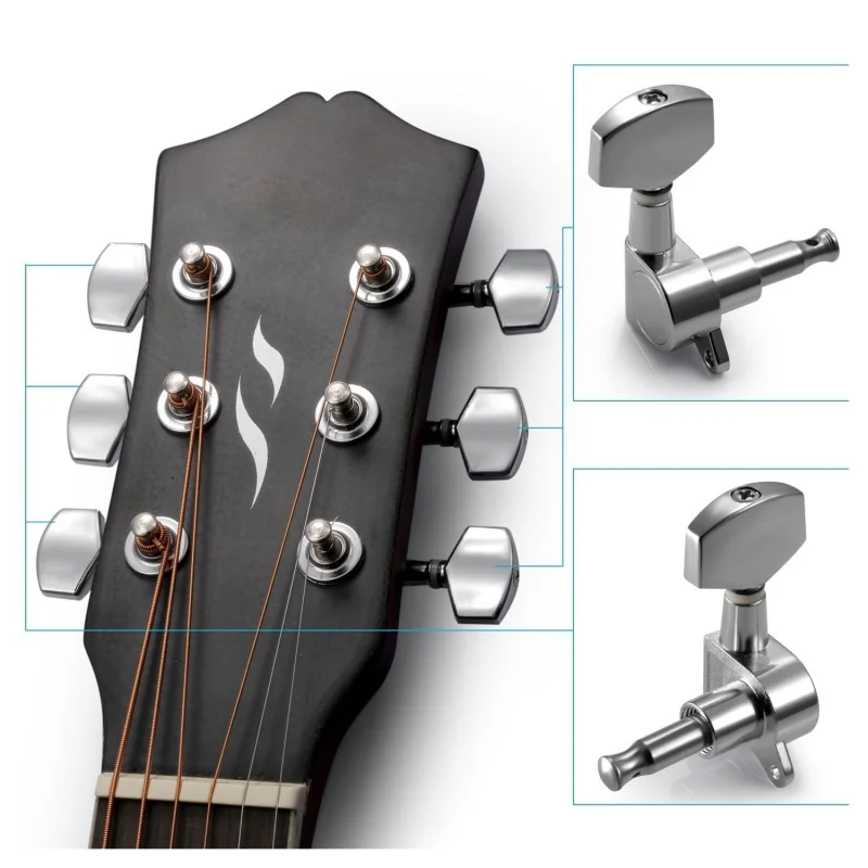 6 шт. Серебряная акустическая гитарная машина с головками, ручка для гитарной струны, тюнер Peg (3 для левого + 3 для правого)