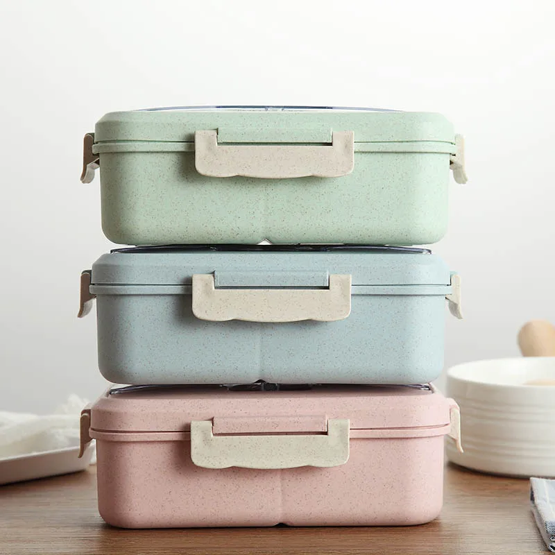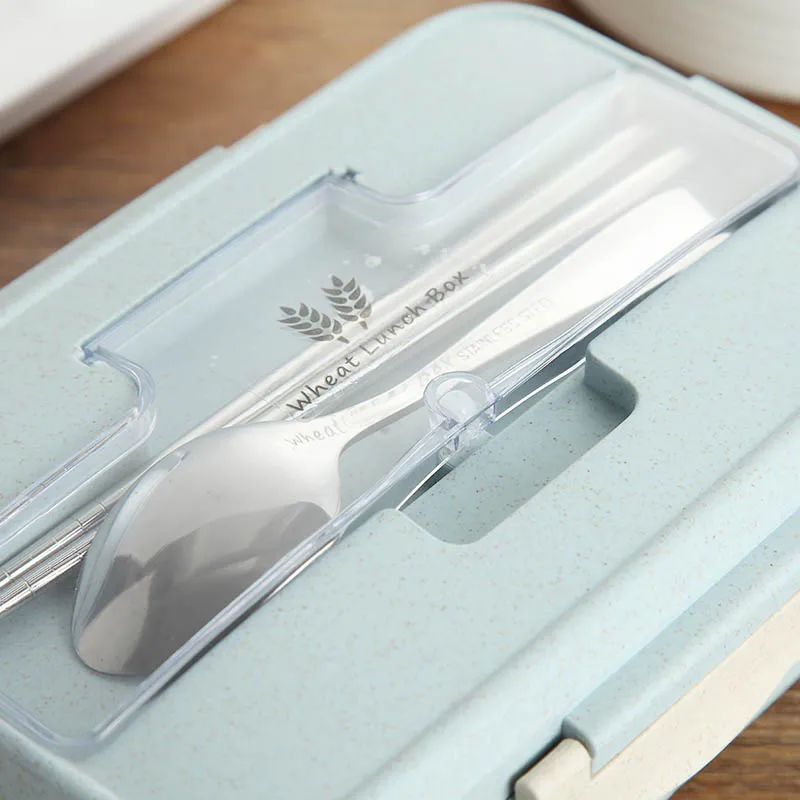 Коробка для ланча из пшеничной соломы, контейнер для хранения свежей пищи с ложкой, палочки для еды