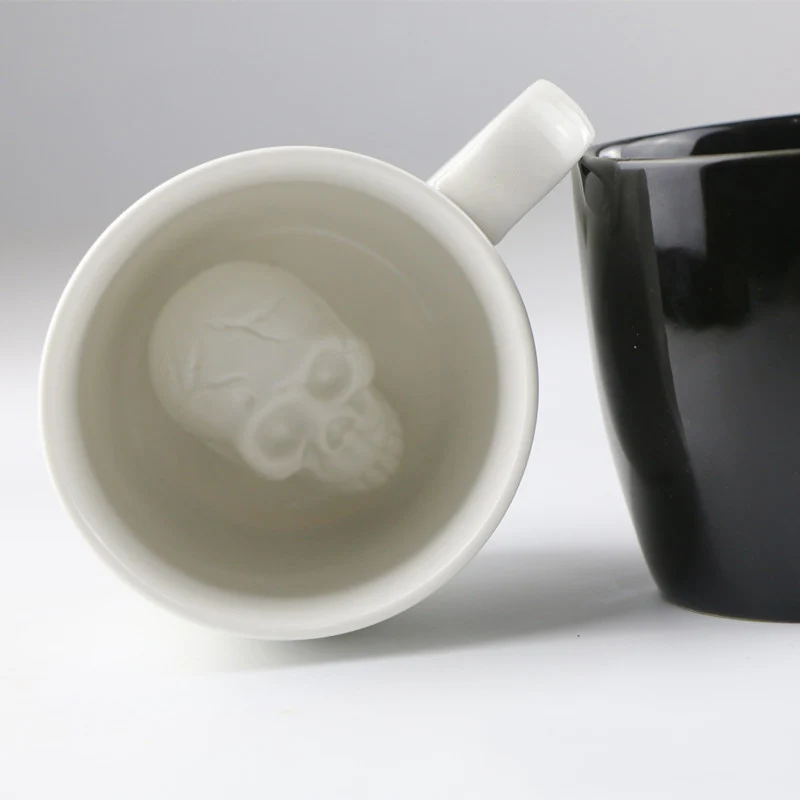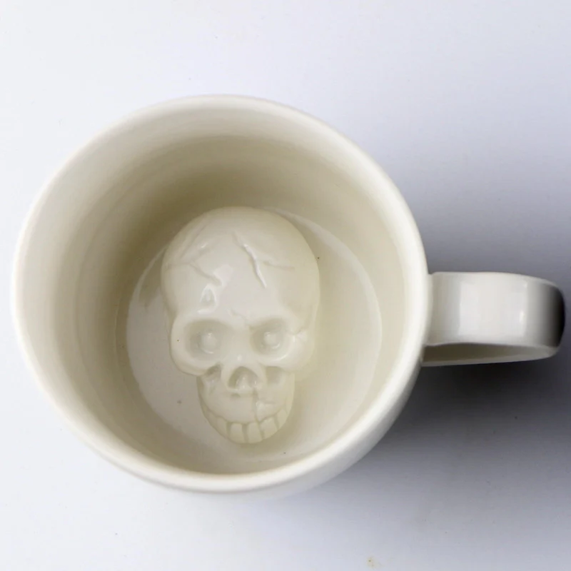 1.Изготовленные из керамики с высоким огнем, эти чашки имеют жуткий череп в нижней части, которые медленно раскрываются, как вы пьете.